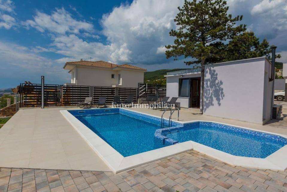 Crikvenica - in one of the most attractive locations, a detached house for tourism is for sale. The house is built on a spacious plot with a lot of accompanying facilities (sauna, storage). The house consists of 10 bedrooms, each with its own bathroom and a view of the sea, a living room and a kitchen and dining room on two floors. At the top of the house is a large roof terrace. Panoramic sea view from all floors.