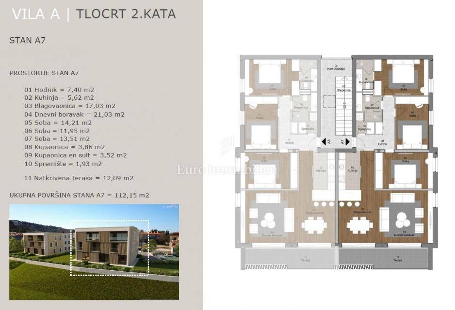 Apartment for sale on the 2nd floor of a residential building, which consists of a hallway, kitchen with dining room, living room, 3 bedrooms, 2 bathrooms and a storage room and a covered terrace. The apartments have a view of the sea, which makes this kind of real estate a real rarity on the market. The parking space is paid an additional 5,000 EUR.