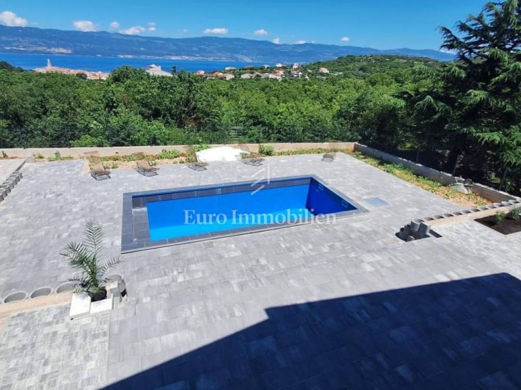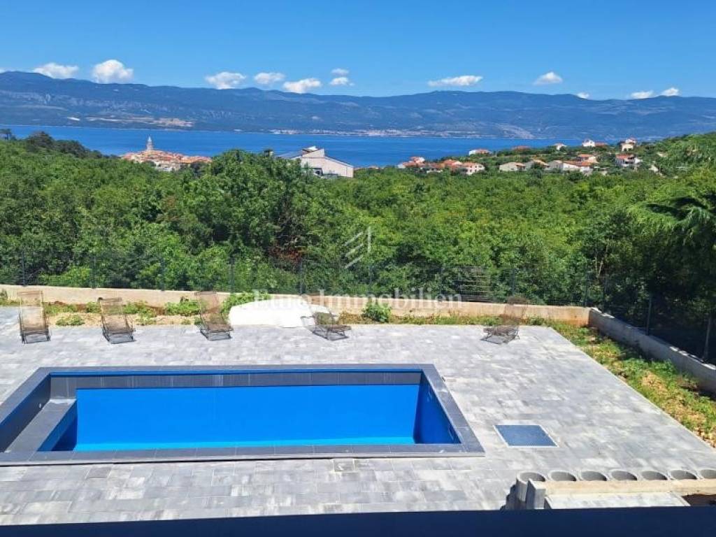 Island of Krk, Vrbnik - a house with a beautiful view of the sea and a swimming pool.