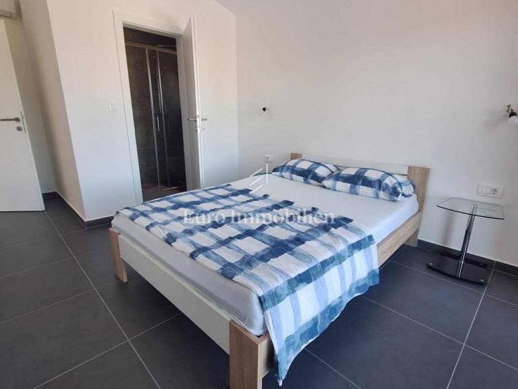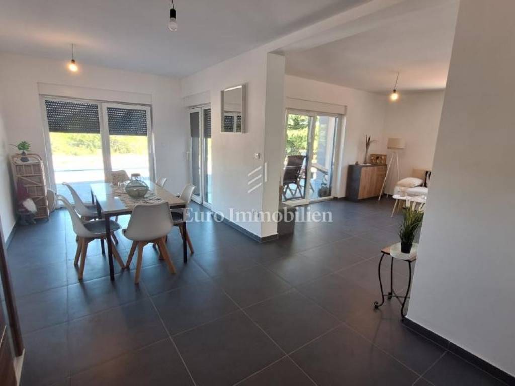 For sale is a new house with an area of ​​138 m2, built on a plot of 851 m2. The house consists of two floors. On the ground floor there is a hallway, bathroom, small bedroom, open space living room, kitchen and dining room, small storage room. Upstairs there are 3 bedrooms and two bathrooms. Heat pump, air-conditioned, furnished.