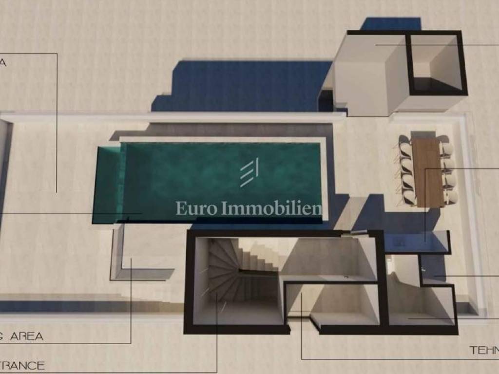 On the roof terrace there is an uncovered roof terrace, swimming pool, overflow part of the pool, engine room, sunbathing area, covered entrance.