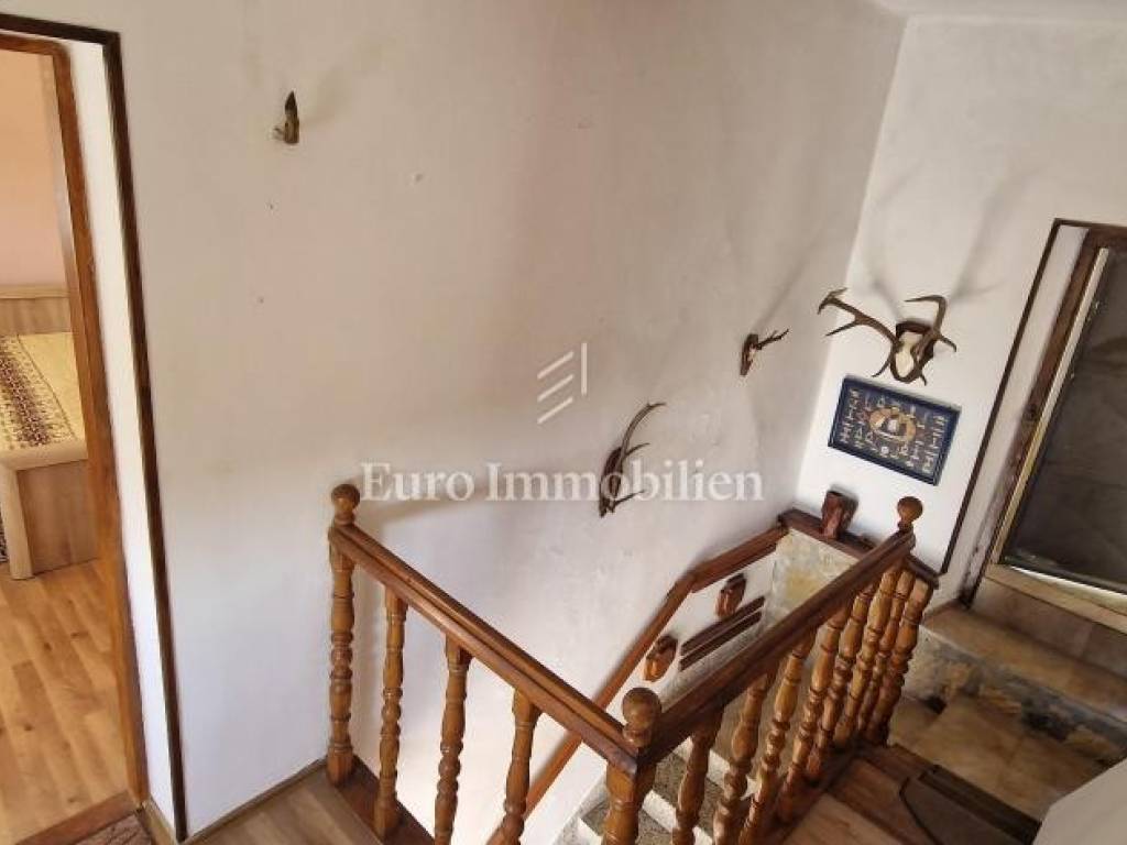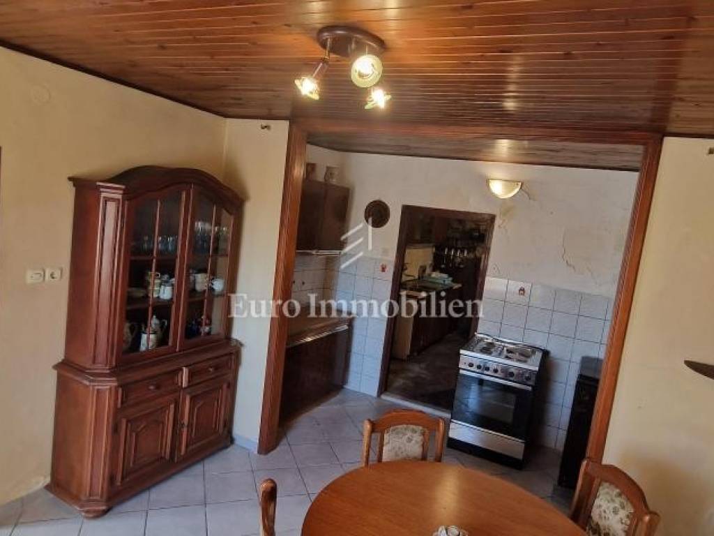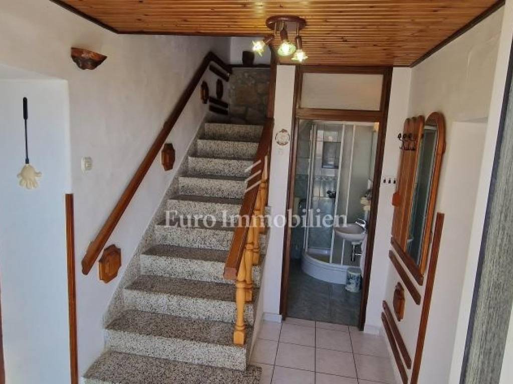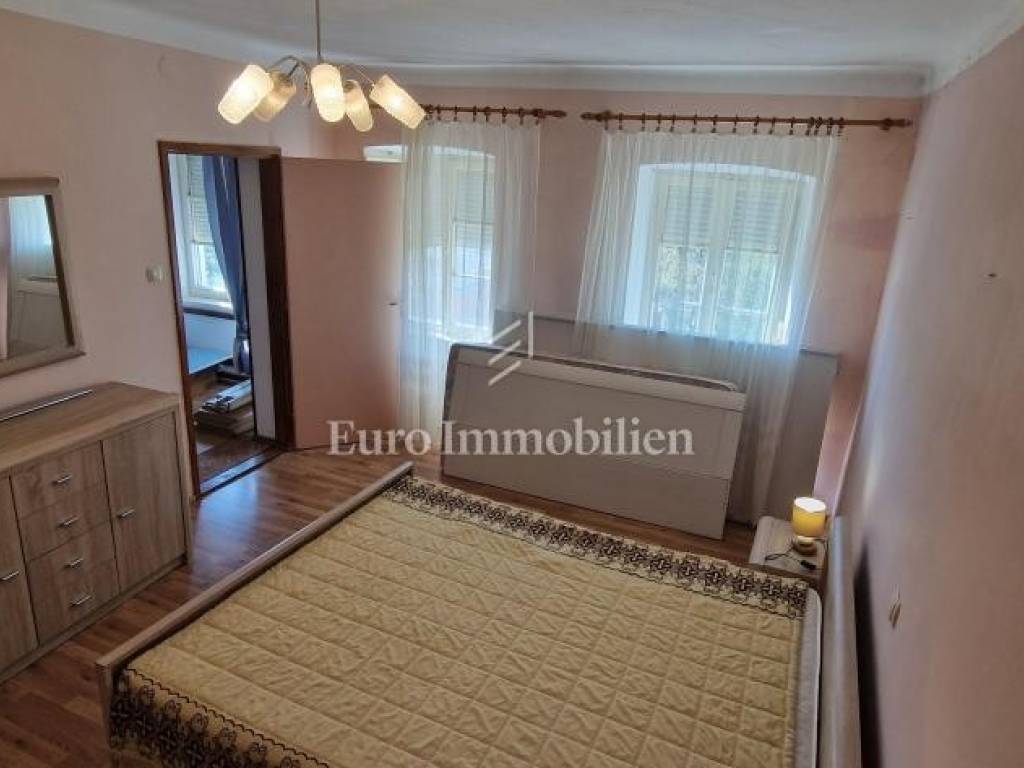 Nestled in the charming village of Grižane, just a short drive from Crikvenica, this inviting home offers privacy and tranquility. Spread across two floors, it features a hallway, cozy living room, kitchen with dining area, and three bedrooms, two of which are on the upper floor. The north side boasts a spacious courtyard, while the south side offers a garage, additional parking, and a garden. The home is move-in ready but could use a refresh to unlock its full potential. From this prime spot, enjoy a stunning sea view over the Crikvenica hinterland, creating a perfect oasis close to the coast.