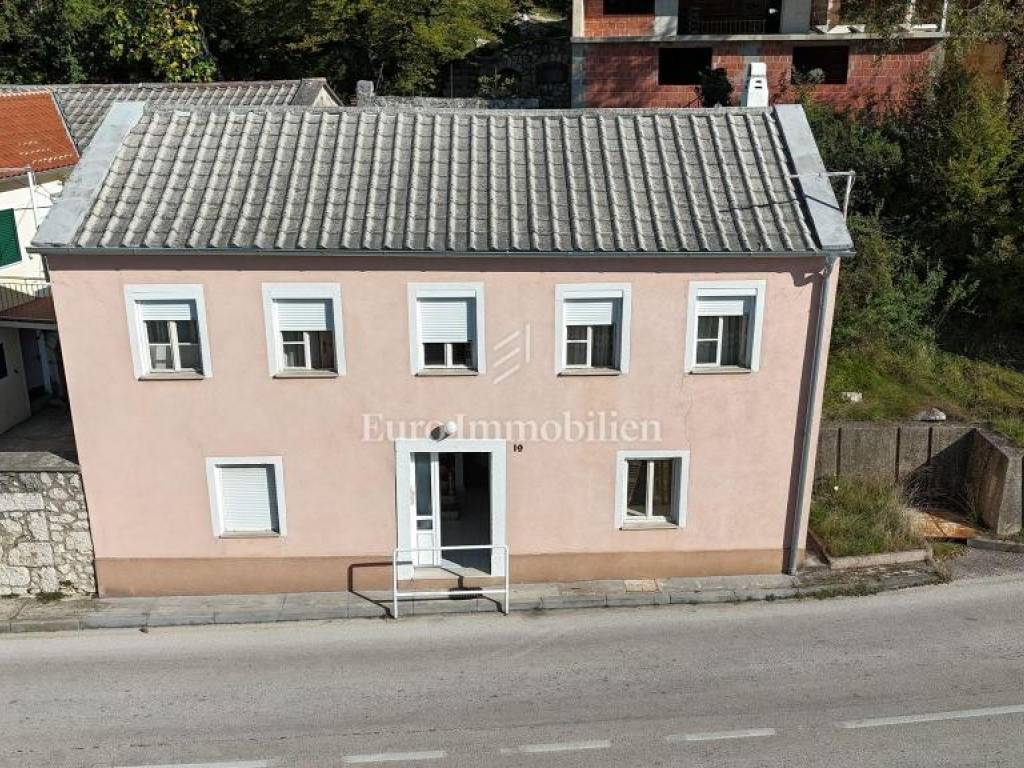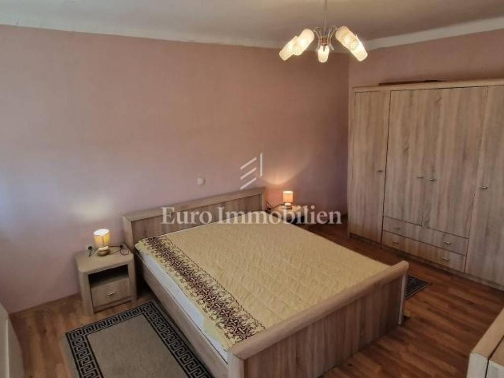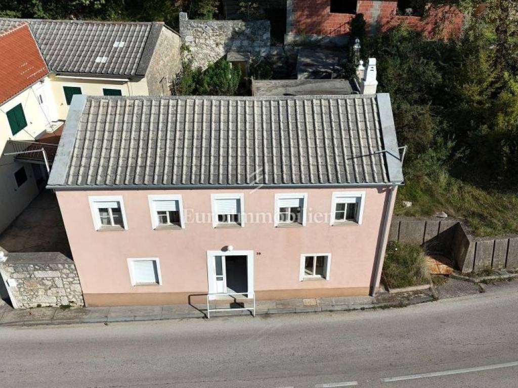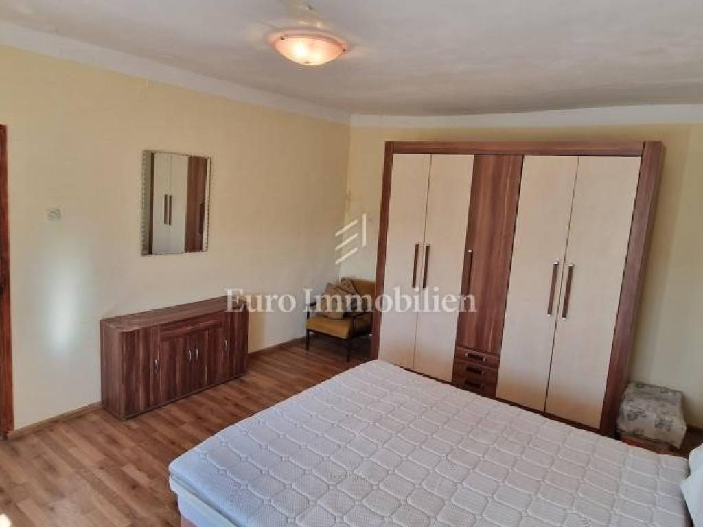 Nestled in the charming village of Grižane, just a short drive from Crikvenica, this inviting home offers privacy and tranquility. Spread across two floors, it features a hallway, cozy living room, kitchen with dining area, and three bedrooms, two of which are on the upper floor. The north side boasts a spacious courtyard, while the south side offers a garage, additional parking, and a garden. The home is move-in ready but could use a refresh to unlock its full potential. From this prime spot, enjoy a stunning sea view over the Crikvenica hinterland, creating a perfect oasis close to the coast.