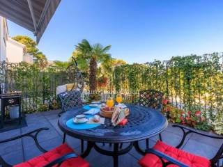 The apartment is well-built and equipped with underfloor heating and air conditioning. It features a landscaped garden of 80 m², and a dedicated parking space is included in the ownership.