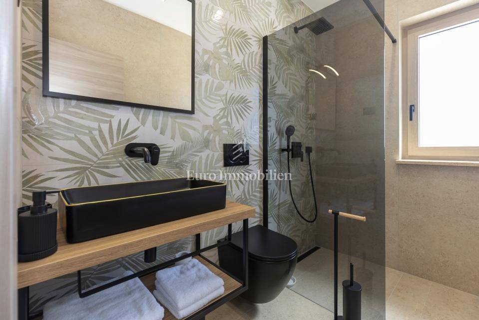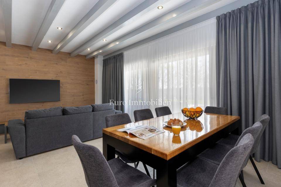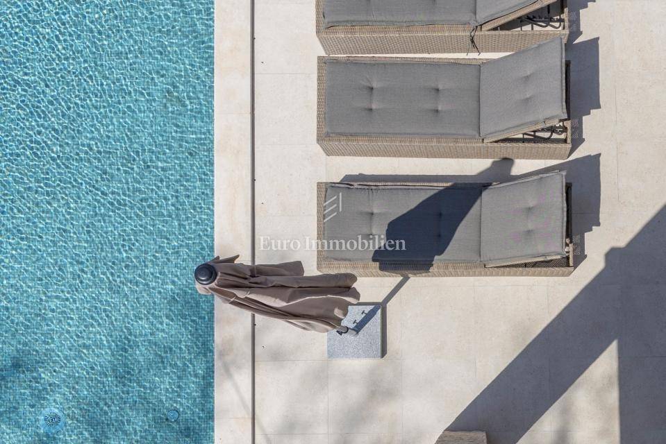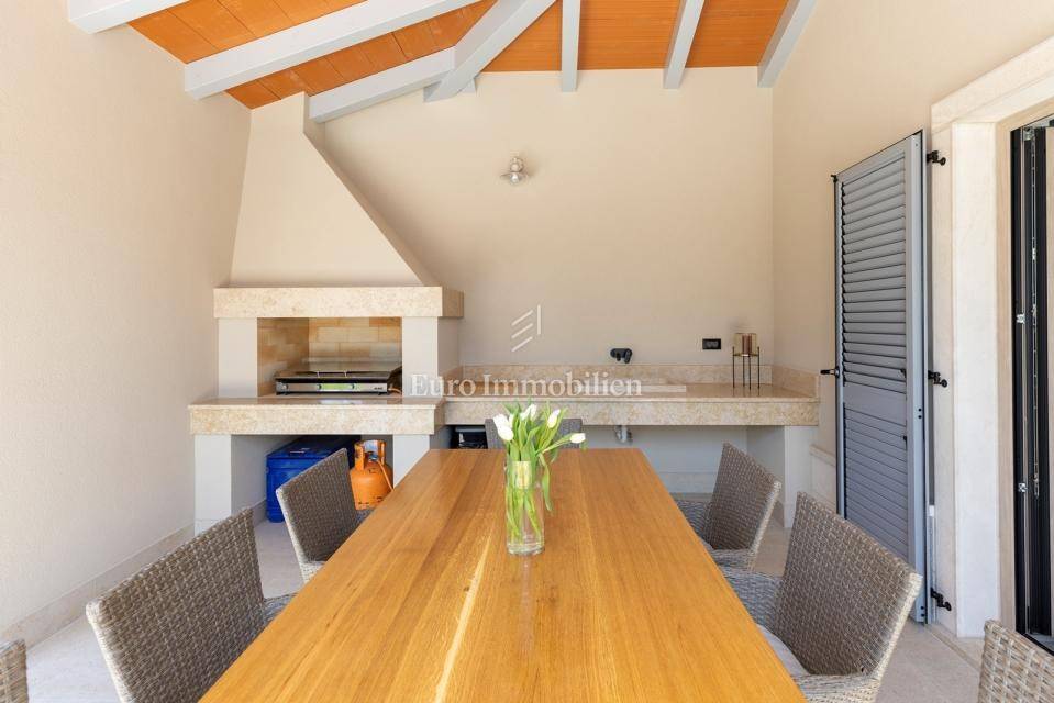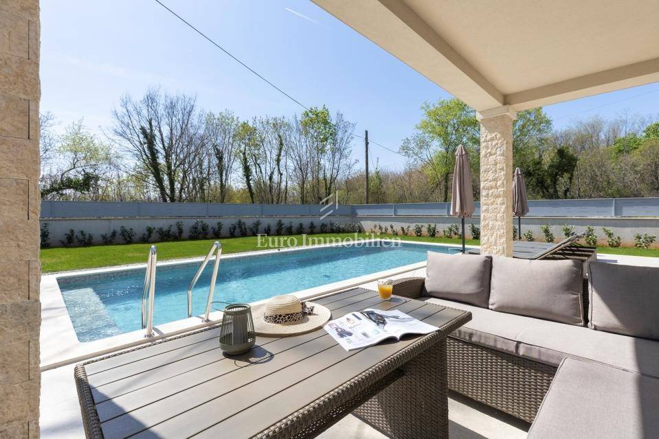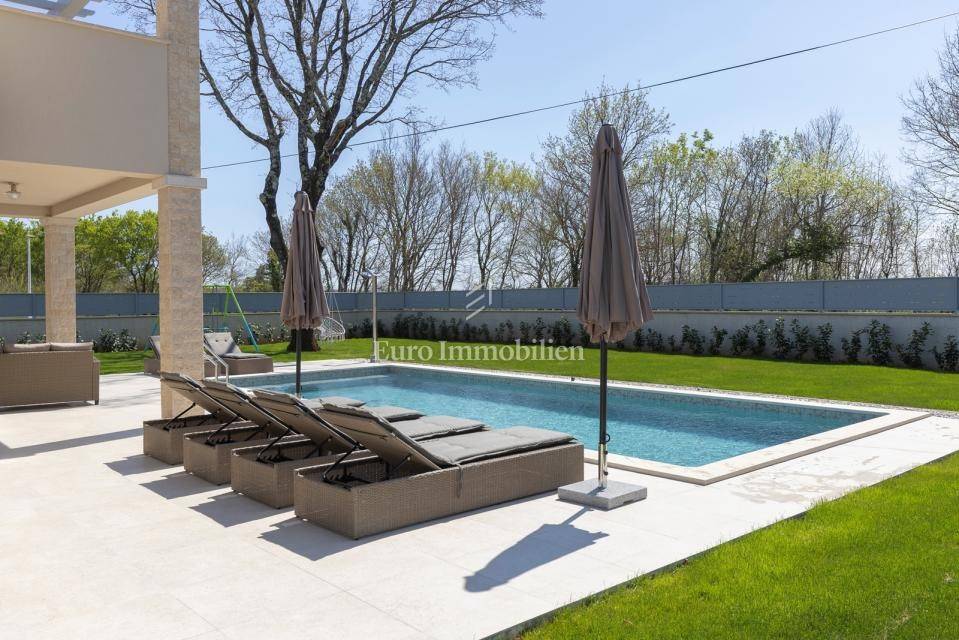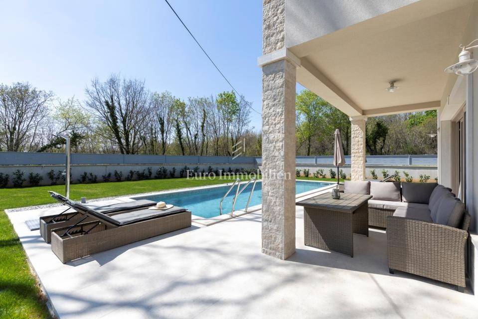 In a quiet village near Labin, on a plot of 800 m², stands a modern house with a total usable area of 170 m².