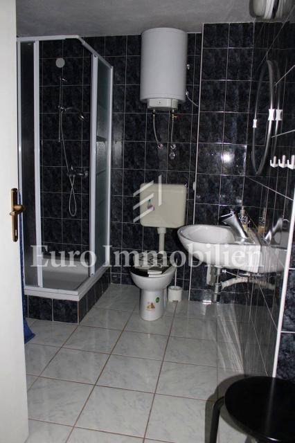 External stairs lead to the 1st floor, where two residential units are located. The first residential unit consists of an entrance hall, kitchen, two bedrooms, bathroom, and the adjoining partially covered terrace. The second residential unit is in the northern part of the floor and consists of a living room with a kitchen and dining room, a bedroom and a bathroom.