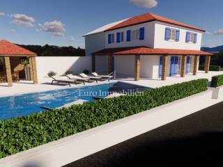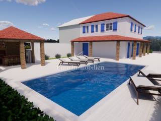 The house has a beautiful sea view. There is a swimming pool with a sunbathing area and several parking spaces in the beautifully landscaped garden.