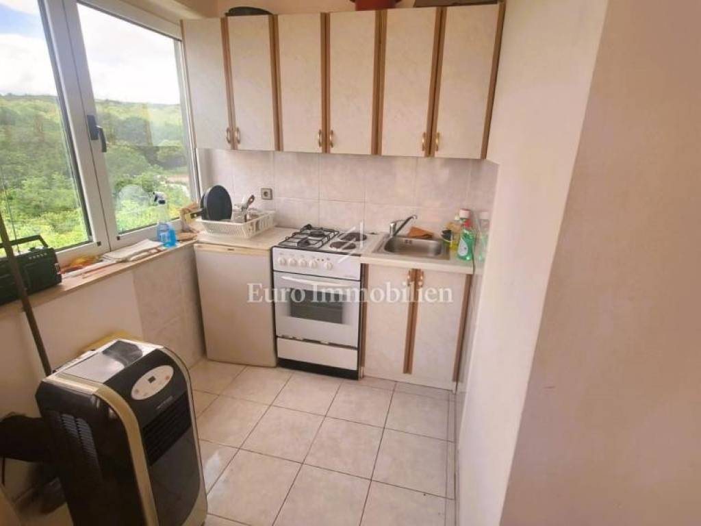 An apartment on the top floor of a building in the immediate vicinity of the center of Malinska is for sale. It consists of an entrance area, a bathroom, one bedroom and one room that represents the kitchen, dining and living room. The living area faces the sea, has large glass surfaces and two French balconies.