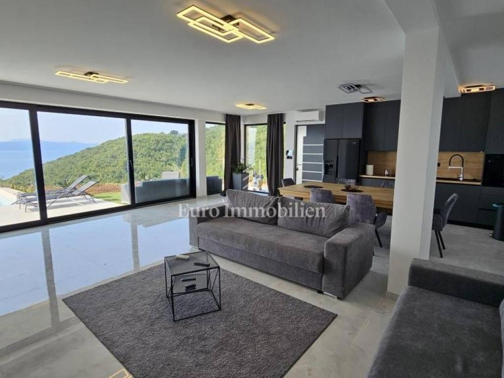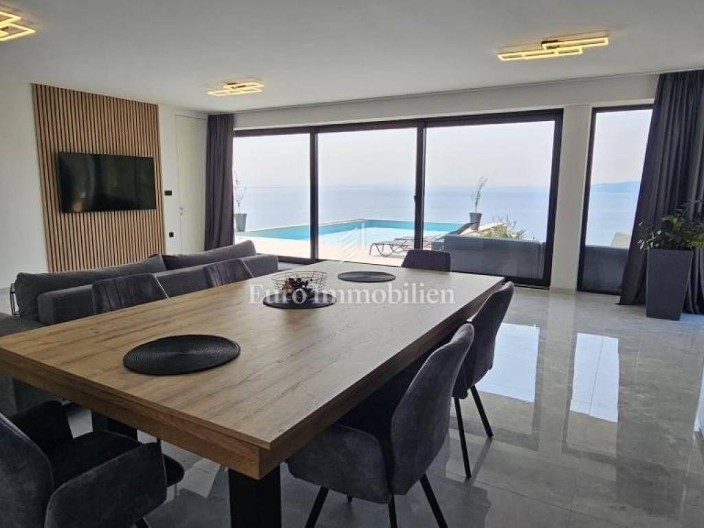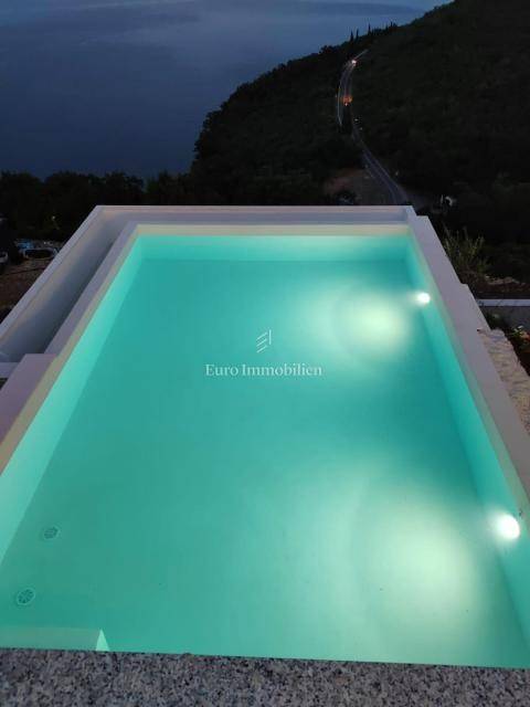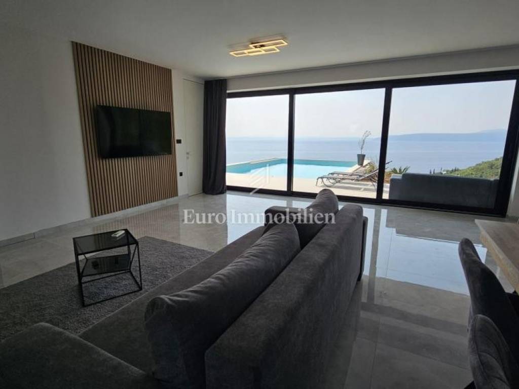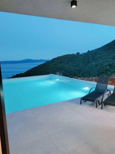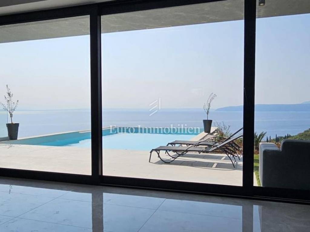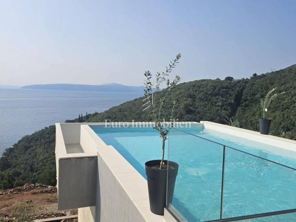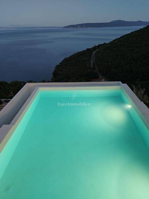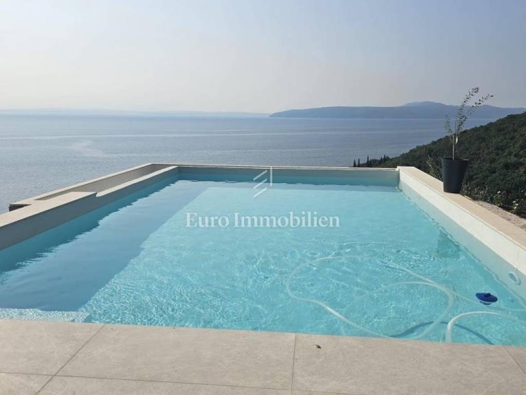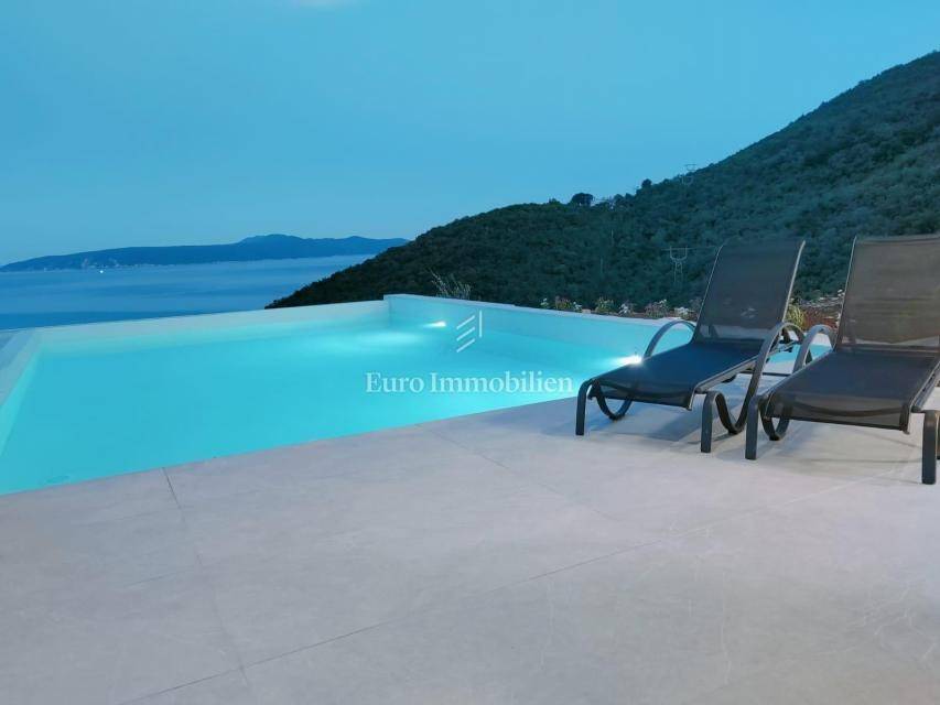 Above one of the most beautiful Kvarner beaches, a detached house with a spectacular view of the sea and Kvarner is for sale.