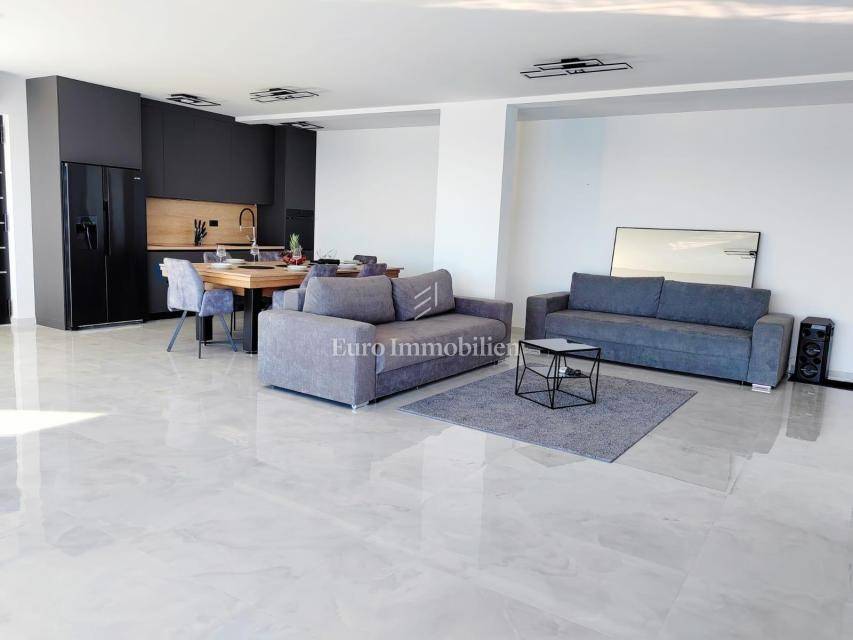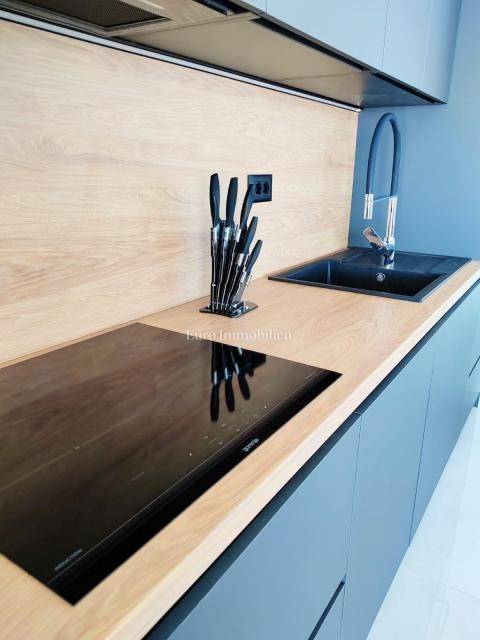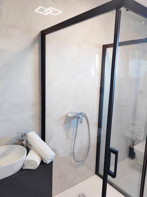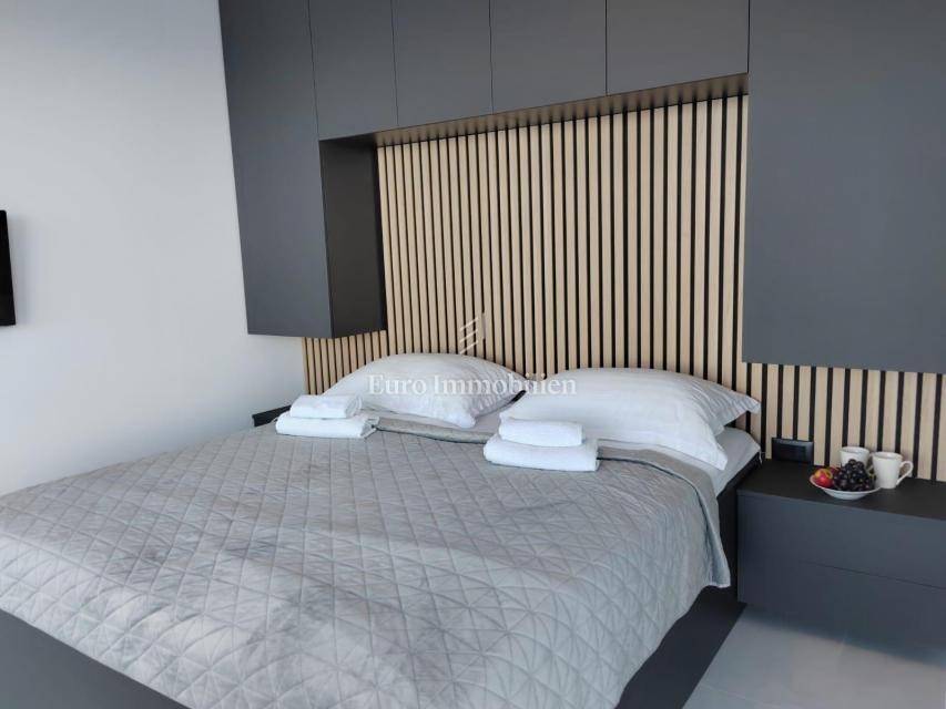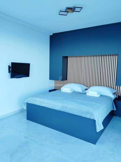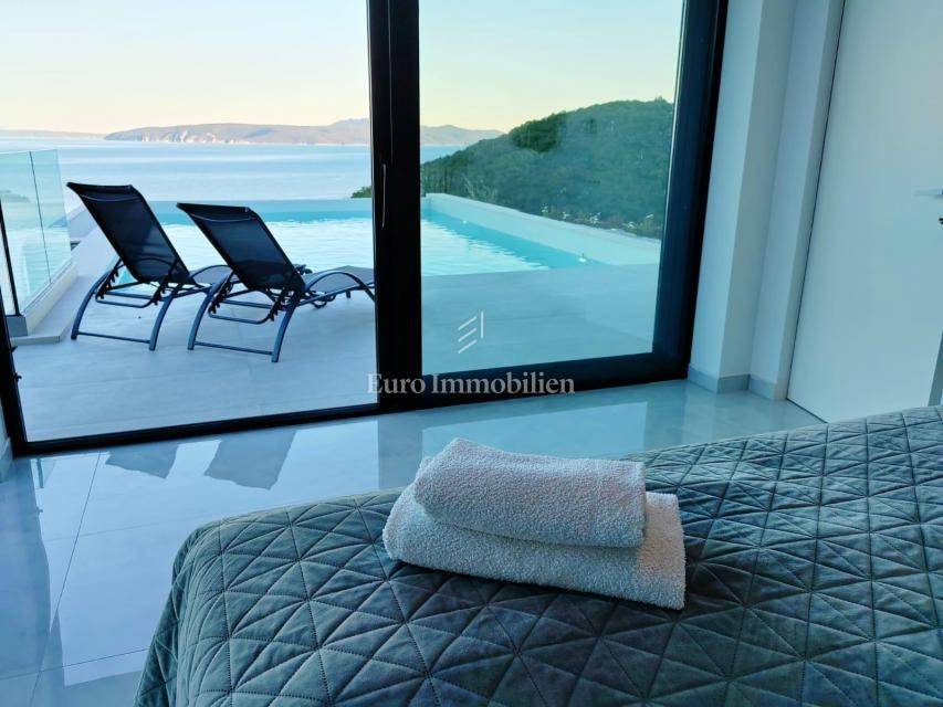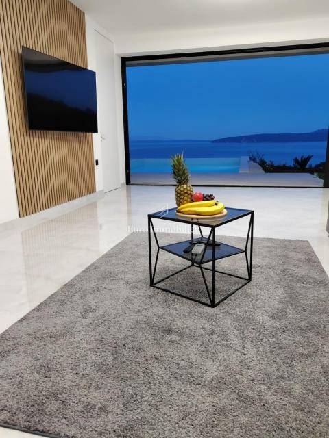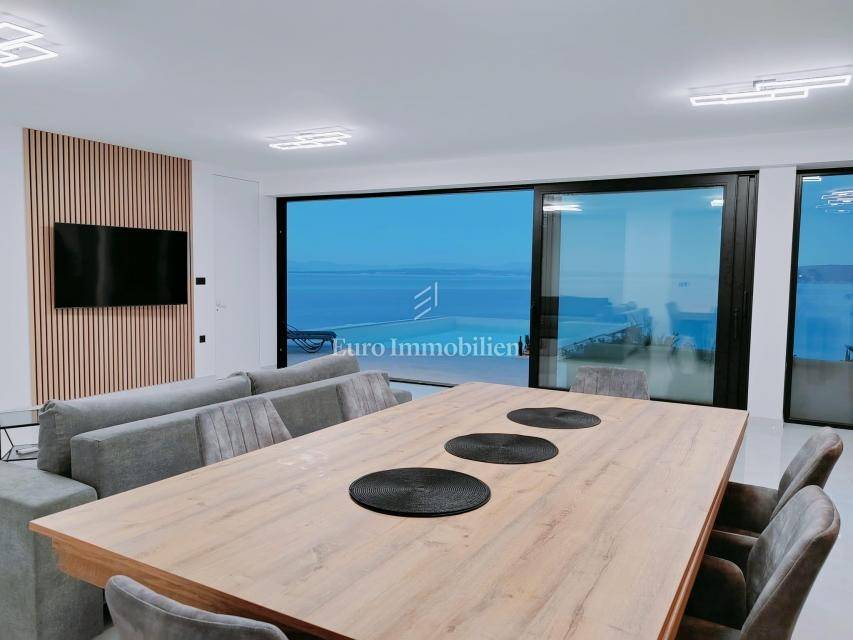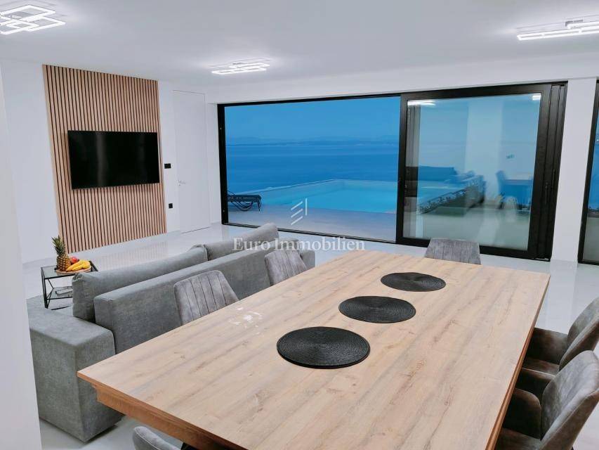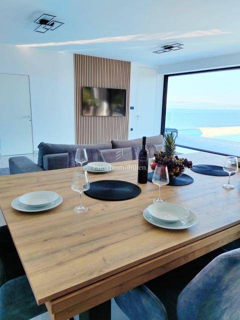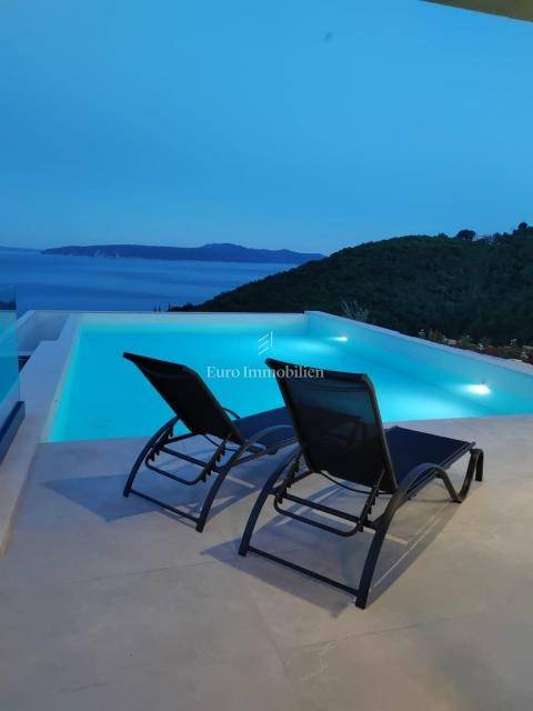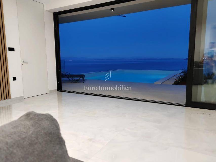 Access to the house is from the back, so the front part of the house is completely facing the sea, and in front of it there is a 50 m² infinity pool.