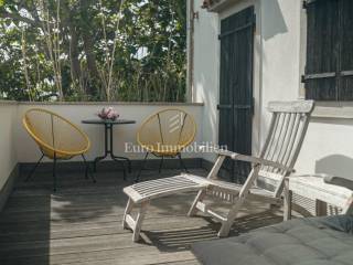 It was built entirely in 2006 as a double building, each with its own entrance and exit to the terrace. Each duplex consists of 79.5 m2 of living space and 32 m2 of terrace. The house has been regularly maintained and constantly renovated over the years. It is categorized for rent. During construction, the conditions of cultural heritage were taken into account.
