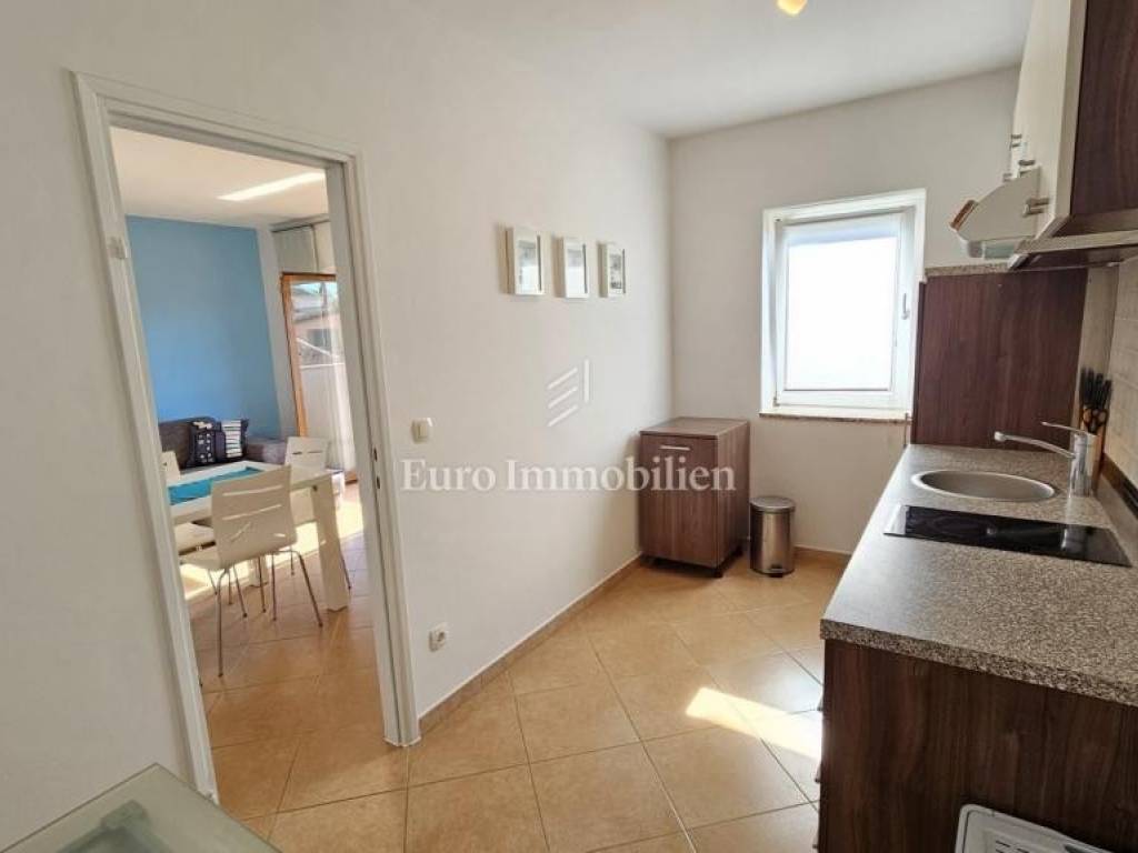 The orientation of the apartment is north-south, which provides ideal conditions for ventilation during the summer months and provides a pleasant microclimate without the need to use air conditioning for cooling. The apartment is heated by a Vaillant electric convector and air conditioning. In the hallway in front of the apartment there is a niche where bicycles and children's toys can be stored. The apartment is neat, dry, well-maintained and is being sold fully furnished. The building is located next to the forest in a very quiet village 5 km from Novigrad and is an ideal place to live and relax for anyone who wants peace. The village is 700 m away from the main road and can be reached by a road that passes through fields and olive groves. There is a shared parking lot in front of the building, and it is possible to park a car along the road on the approach to the building.
