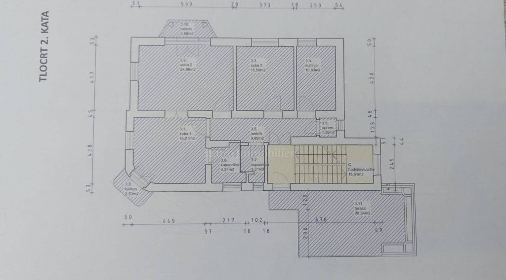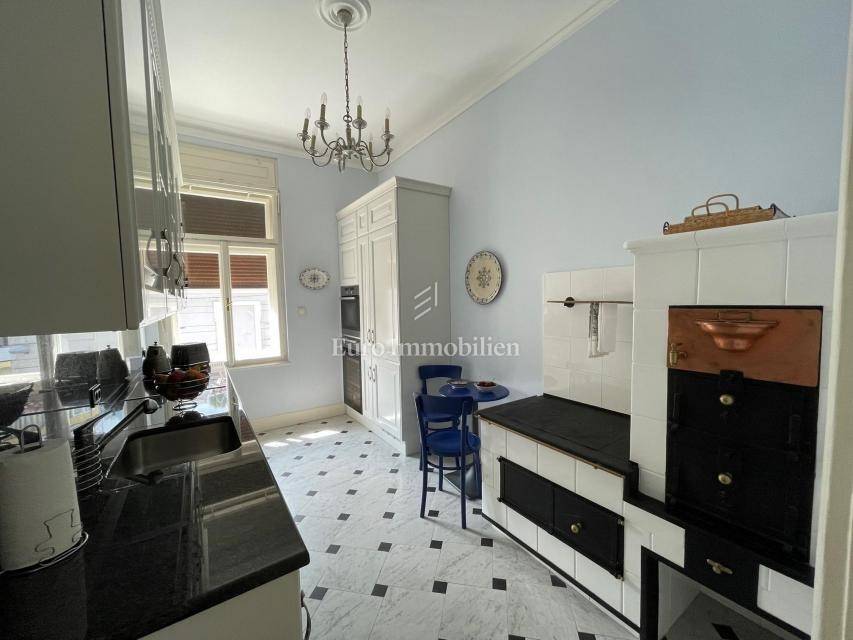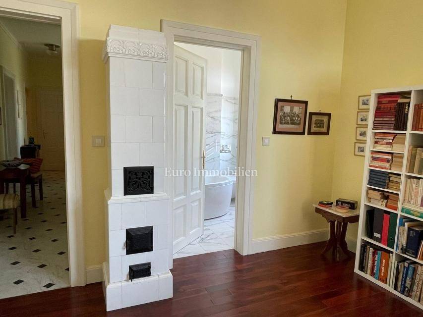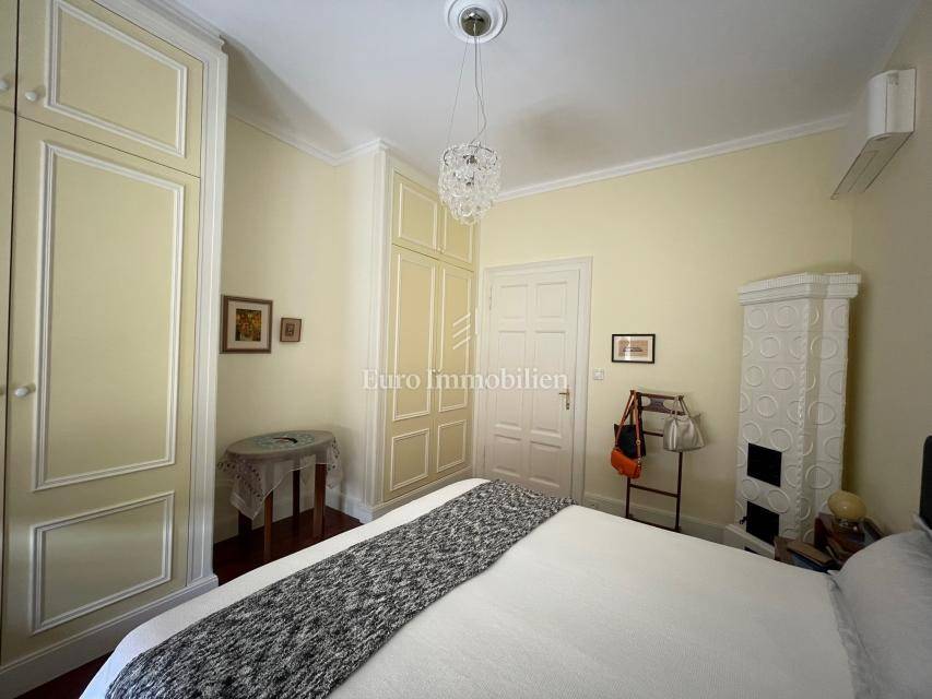 The apartment with a net usable area of 128 m2 is located on the second floor, and consists of a kitchen, a living room, two bedrooms, two bathrooms, a corridor, a storage room, two balconies and two terraces of a total of 33 m2. It is for sale fully furnished. Completely renovated and restored in 2014.(stoves in the rooms, fireplace in the living room and stove in the kitchen), air conditioners (cooling/heating) in all rooms, underfloor heating and radiators in the bathrooms and prepared connections for central heating with electricity. There is a possibility to make a parking space on the common garden. The roof and facade of the building are under renovation.