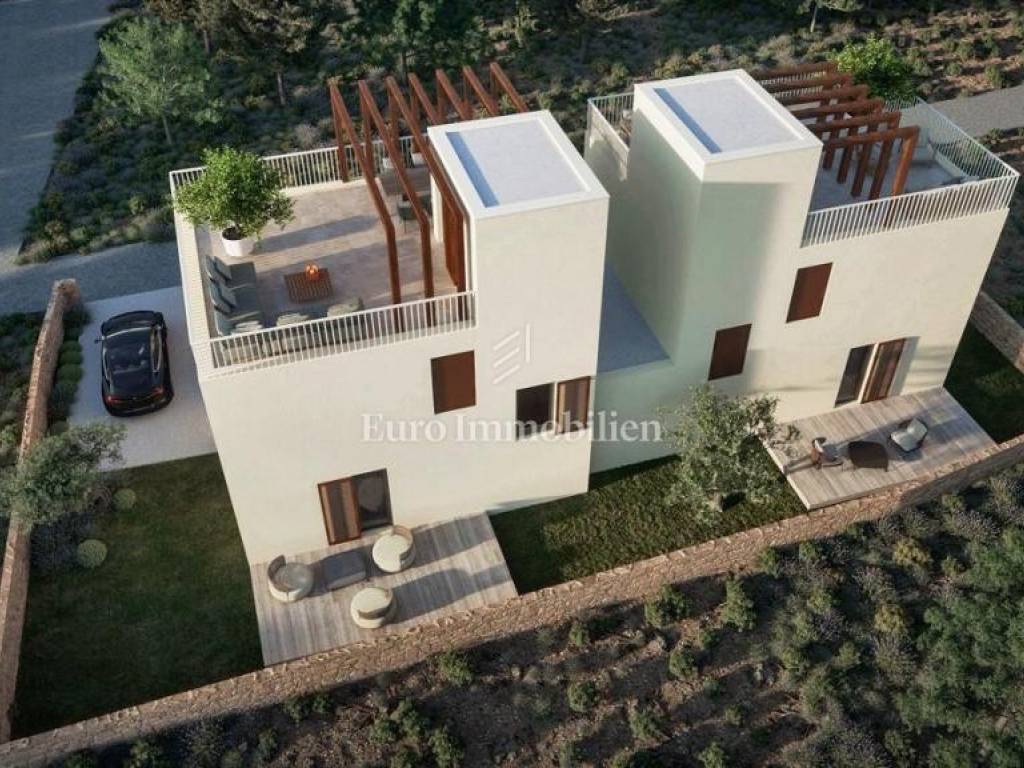 Quality materials and equipment are used during construction, such as Porotherm blocks, Rofix facade system, TPO roof insulation, Gealan 9000 carpentry (includes electric shutter lifters, triple-layer glass, and mosquito nets), floor heating on a heat pump, pool heating, air conditioners in living room and rooms, jacuzzi on the roof terrace.