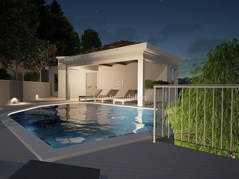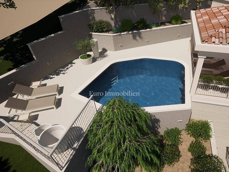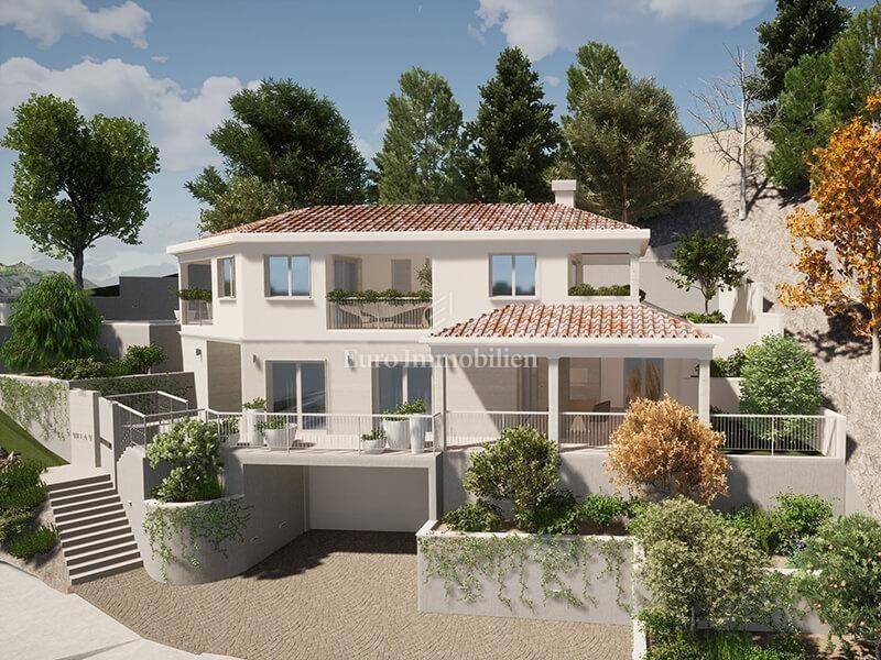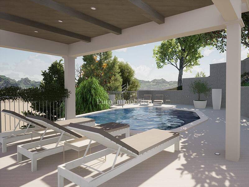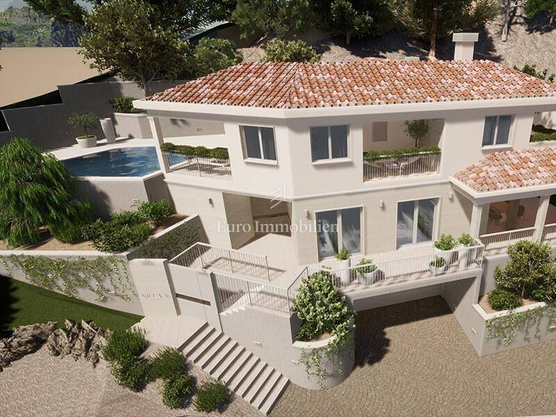 A luxury villa with a pool and a panoramic view of the sea in Bast is for sale.