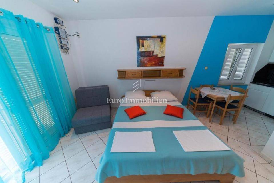 A beautiful apartment house with an excellent access and a landscaped garden in Selc is for sale. The house consists of 11 fully equipped and furnished units, each with a balcony or terrace. There are 8 parking spaces inside the garden, and four more on a separate lot. The pool is located on an elevated part and has a large sunbathing area. Already from the first floor there is a view of the sea and Selce. High-quality materials and equipment were used in the construction.