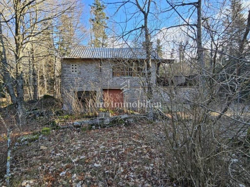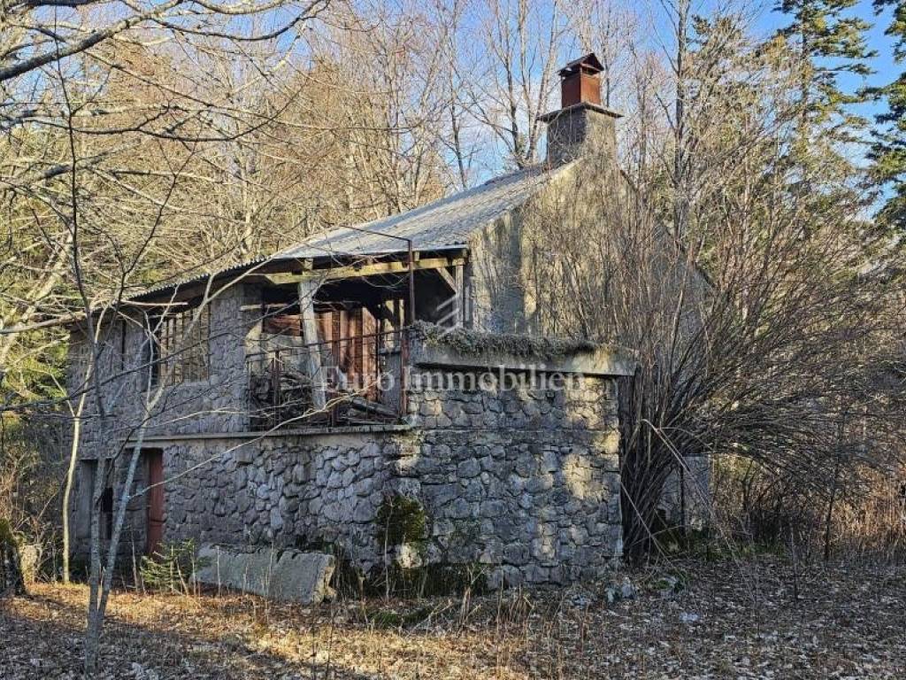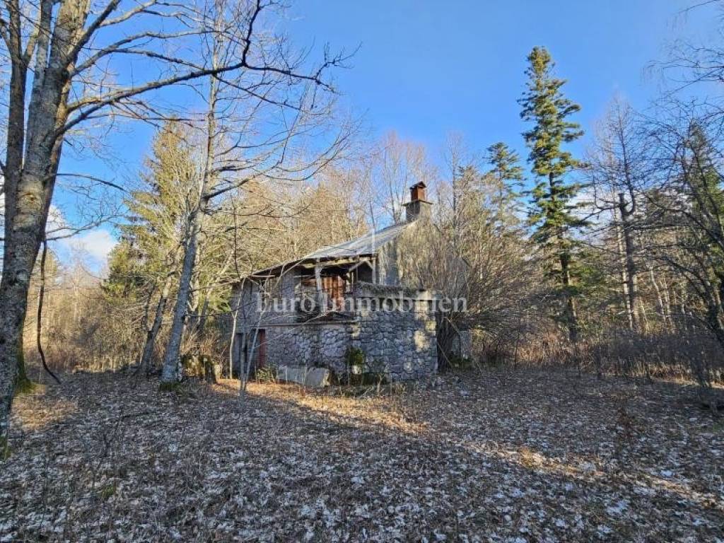 A small cottage for sale in the Bribir forest on over 7,000m2 of land. Part of the land, slightly more than 3,000 m2, is for construction, so there is a possibility of building several buildings. Next to the main road that connects Fužine with the sea is this cottage for complete renovation. There are cottages in the surroundings, so it is not completely isolated.