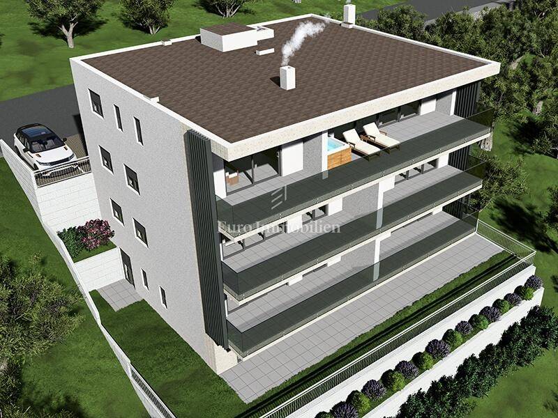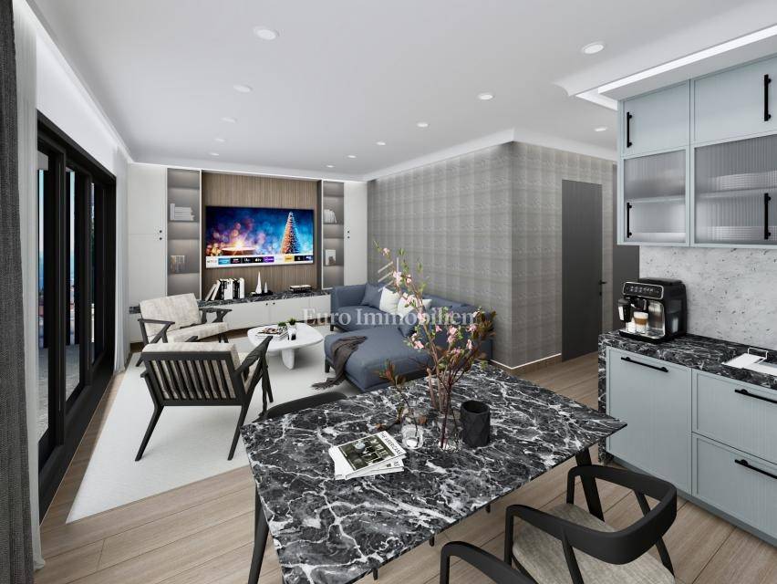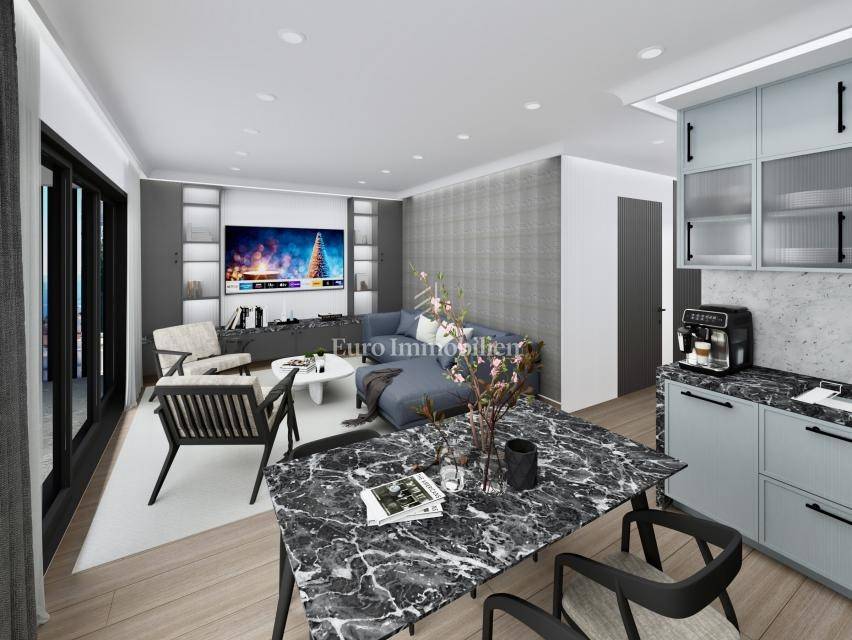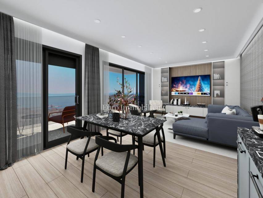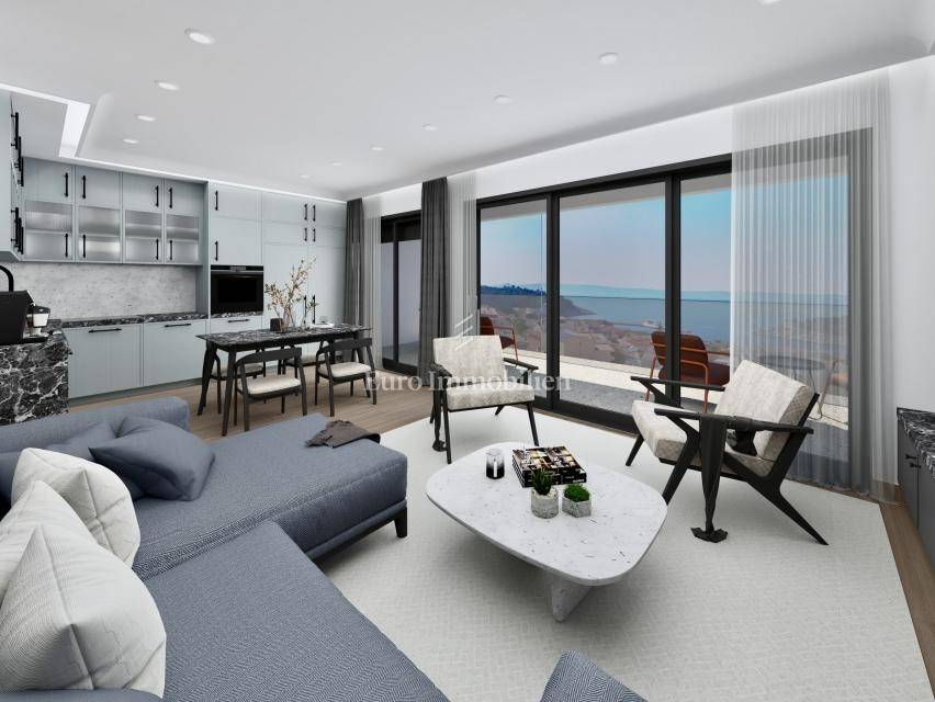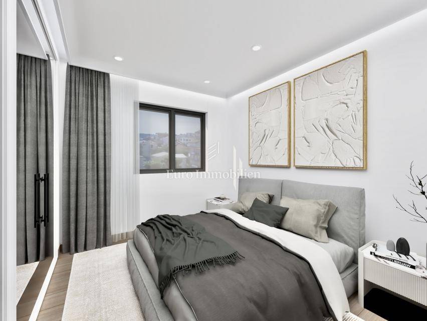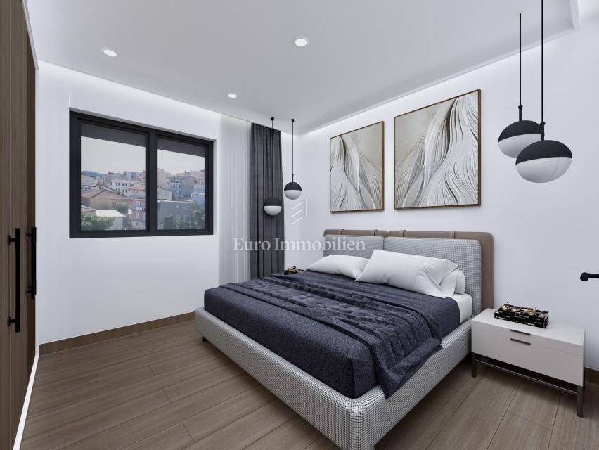 A luxurious new apartment for sale in the center of Makarska with a sea view. It is located in a smaller urban villa with a lift with a total of six apartments spread over four floors. The project is under construction, and completion of construction and move-in is planned for the beginning of summer 2025.