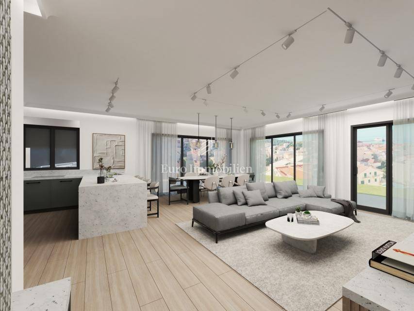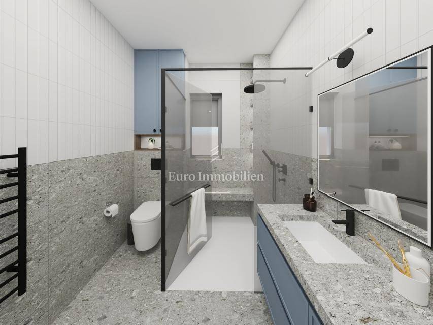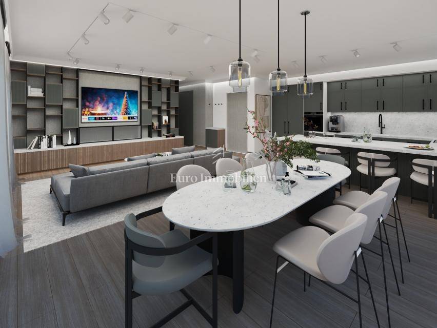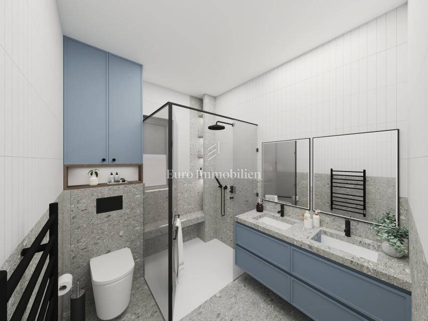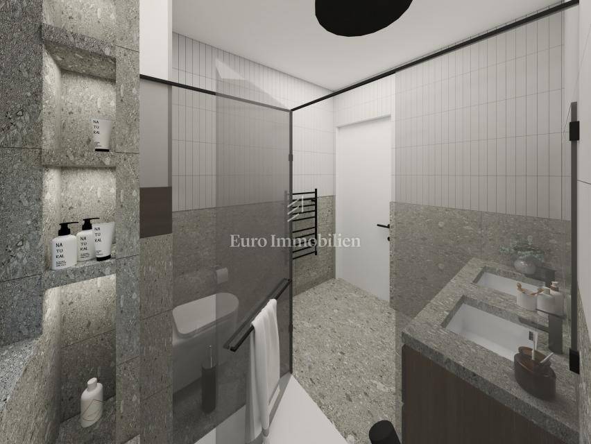 The details of the interior are carefully planned, and during the construction, quality materials and equipment are used, such as high-quality sound and thermal insulation of the building, natural travertine facade, large openings, glass fences without edges on the terraces, high-quality three-layer parquet is installed in all rooms - Croatian production, each room, as well as the living room, has its own air conditioner, LED lighting, the bathrooms are fully equipped and underfloor heating is installed, benches are installed in the shower cabins, and first-class Italian tiles are installed in the bathrooms and on the terraces. An anti-burglary door will be installed at the entrance. It is possible to purchase two outdoor parking spaces.