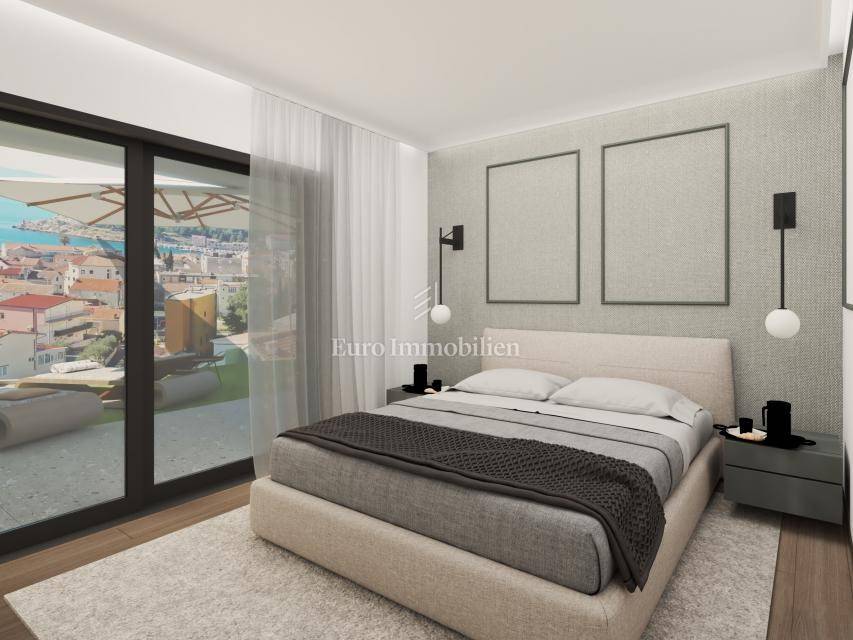 A luxurious new apartment for sale in the center of Makarska with a sea view. It is located in a smaller urban villa with a lift with a total of six apartments spread over four floors. The project is under construction, and completion of construction and move-in is planned for the beginning of summer 2025.