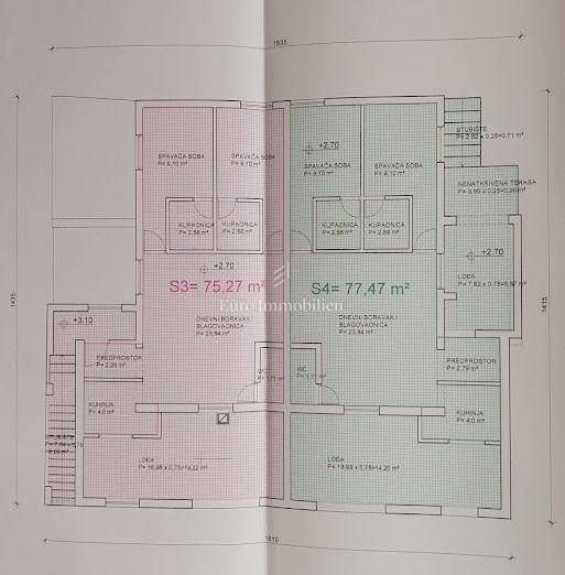 An apartment of 75.27 m2 on the 1st floor of a residential building in Maslenica is for sale. It consists of two bedrooms, two bathrooms, living room with dining room, kitchen, loggia, toilet and terrace. Heating and cooling is via an inverter air conditioner.