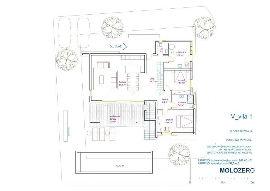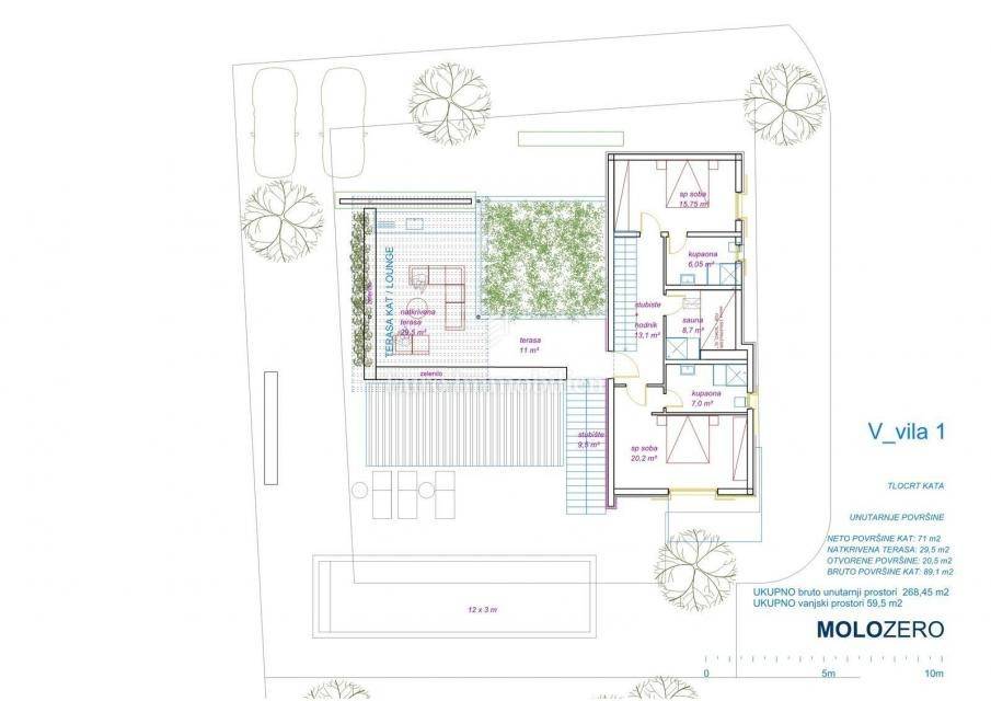 A villa under construction with a panoramic view of the Brijuni Islands is for sale! This exclusive villa is located on a plot of 643 m2. The total net square footage of the villa will be 240 m2. It will have a spacious living room, four bedrooms, three bathrooms with a toilet, a sauna, a guest toilet, an additional shower in the sauna room and a laundry room. On the ground floor, there will be two bedrooms, a bathroom, a guest toilet, a laundry room and a living room with a kitchen that opens onto a spacious covered terrace and garden. On the first floor, there will be two bedrooms with en suite bathrooms, a sauna with a shower and a large covered terrace with a lounge and a garden. The terrace will offer a panoramic view of the Brijuni National Park, the sea, vineyards and olive groves. In the garden of the villa, there will be a swimming pool with a sunbathing area. Two parking spaces are provided at the back of the land. High-quality materials and equipment are used in the construction.