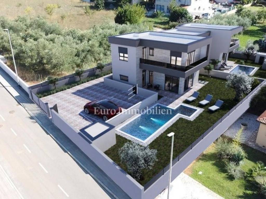 A semi-detached house with a swimming pool in Medulin is for sale. The project is being built in an attractive location near a school, kindergarten, shops and restaurants.