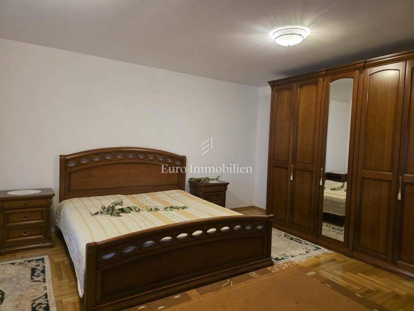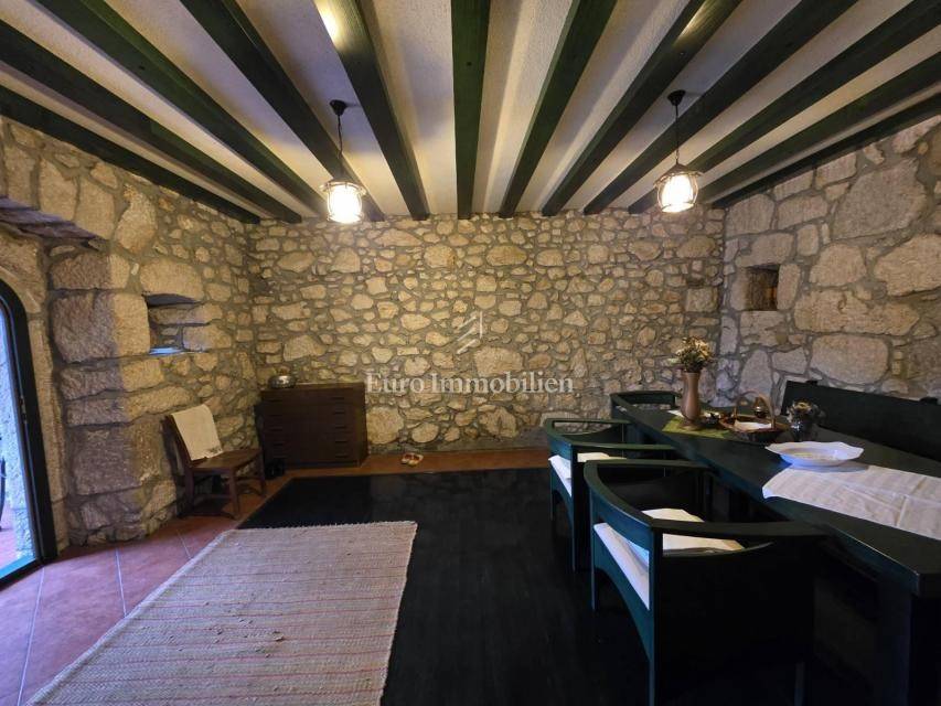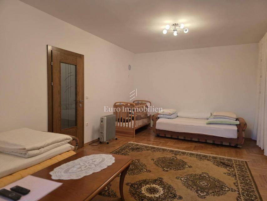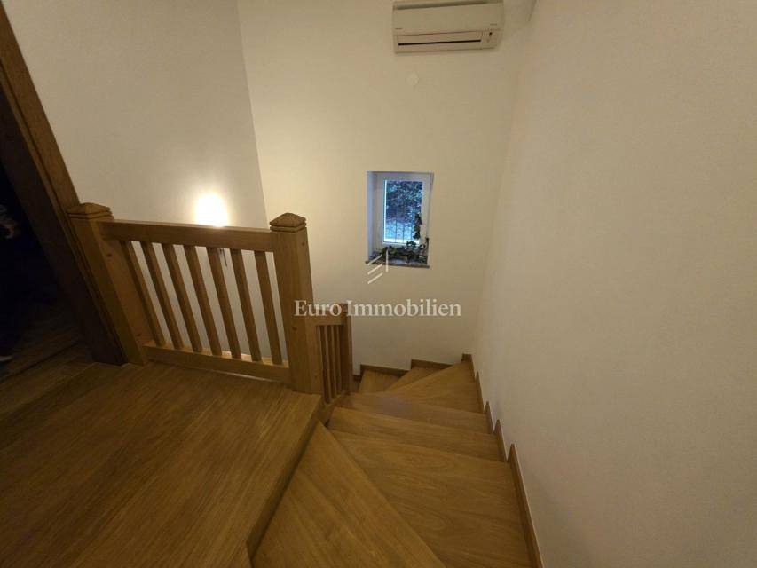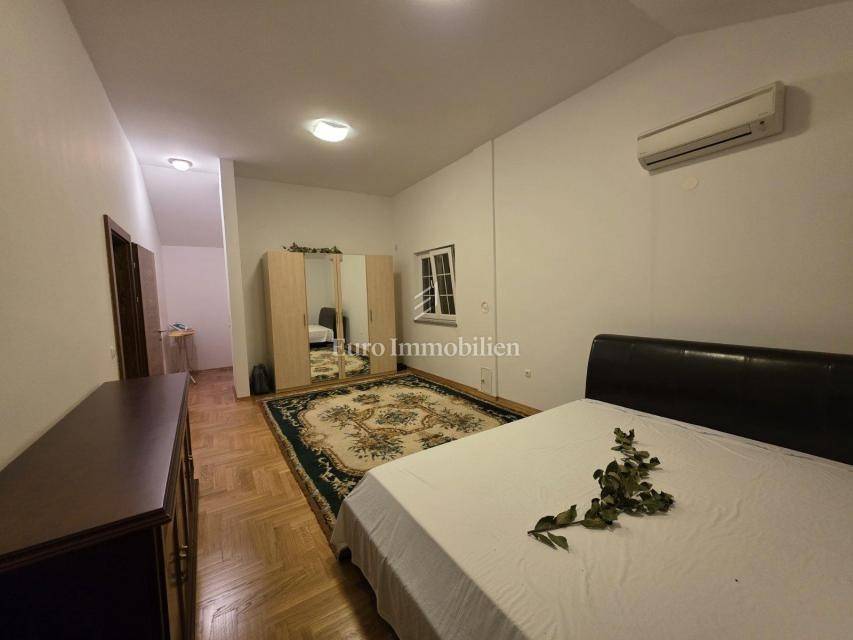 A house with a courtyard at the end of a quiet street. It consists of a ground floor and two floors. The ground floor has a kitchen and dining room, as well as a storage room with a separate entrance. An external staircase leads to the terrace from which there is an entrance to the rest of the house. On the first floor there are two spacious bedrooms and a bathroom, while on the second floor there are three bedrooms and a bathroom. Each room has its own balcony. The balcony offers a view of the sea. The house has been renovated with quality. The property is ideal for living, and also for tourism.