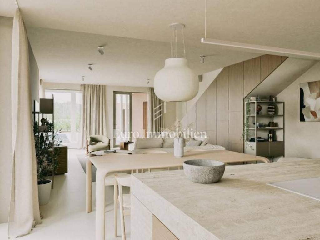 Luxury villa with swimming pool in a beautiful and peaceful location in Istria. The villa has a living area of 176 m2 on a spacious garden of 2,710 m2. The property is located in a quiet village, only 4 km from the center of Labin. It consists of a ground floor and an upper floor; The ground floor is modernly decorated with an open space concept of the kitchen, dining room and living room, making the space functional and airy. On this floor there is also a storage room (indoor and outdoor), a sauna/fitness room, and access to a covered terrace with a summer kitchen and a heated swimming pool with a massage area (area 48 m2). On the upper floor there are 4 bedrooms with en-suite bathrooms and access to the terrace. In addition to the outdoor pool, the beautifully landscaped garden also includes an auxiliary building serving as an outdoor storage room of 12 m2 and parking for 2 parking spaces. Construction completion date: June 2025.
