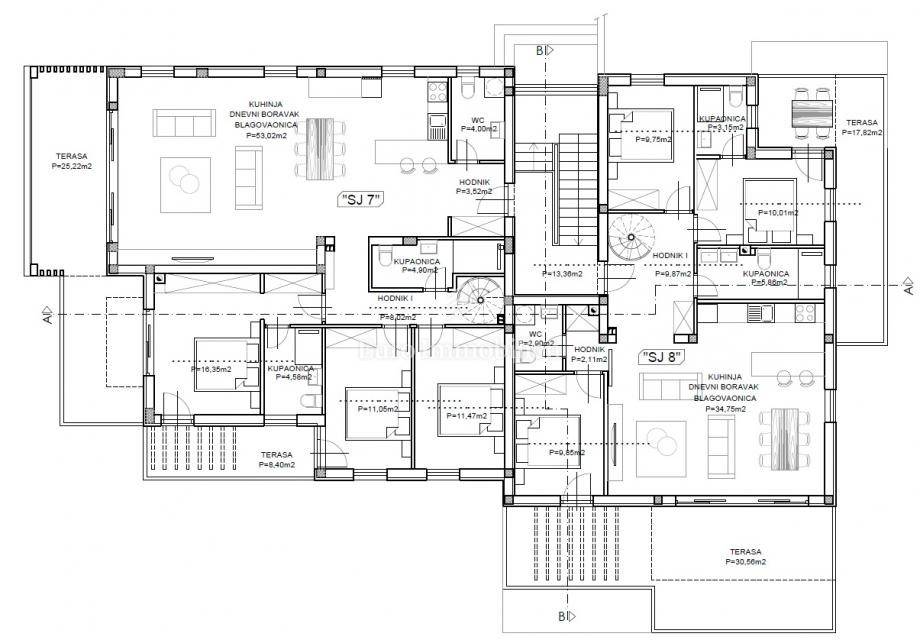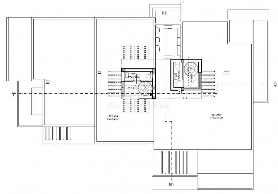 APARTMENT is a two-story apartment, consisting of three bedrooms, two hallways, staircases, two bathrooms, living room, dining room and kitchen on the second floor. It also has two terraces of 30.56m2 and 18.20m2. On the third floor there is a staircase, toilet and a large terrace of 98.74m2. There is 1 parking space.