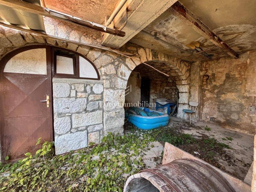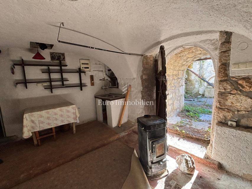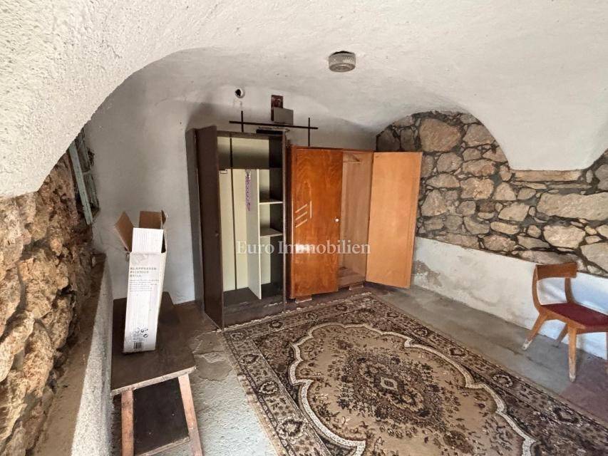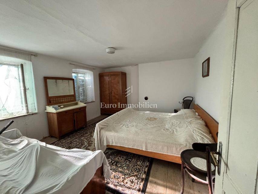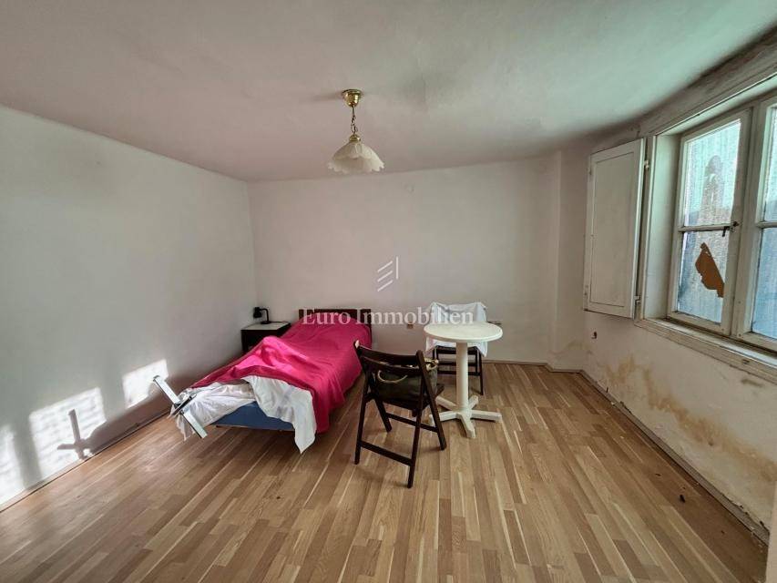 It consists of an entrance courtyard, ground floor with 3 rooms and first floor with 4 rooms. The house has access to water and electricity, and is accessible by an asphalt road. It is 1,500 meters from the town center and 7 kilometers from Crikvenica. It also has a building plot of 605 m2, which is located in the immediate vicinity.