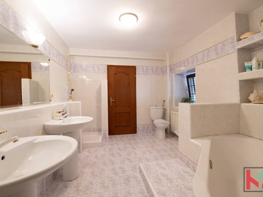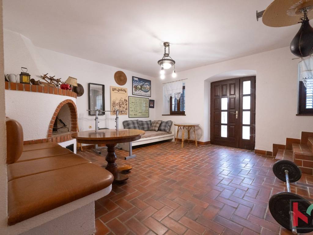- Prizemlje: autentična istarska konoba s kaminom na drva, 4 prostorije (jedna kotlovnica s cisternom za lož ulje), 2 sobe, utiliti, wc. Mogućnost pretvorbe u zasebnu stambenu jedinicu s vlastitim ulazom.