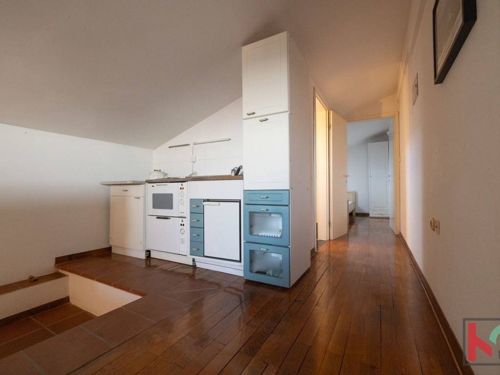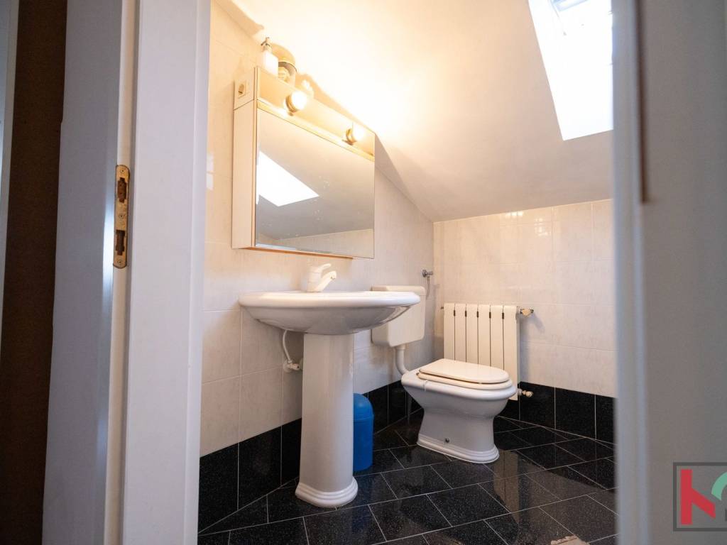 - Mansarda: manja kuhinja, tri spavaće sobe, kupaonica s tušem i WC-om.