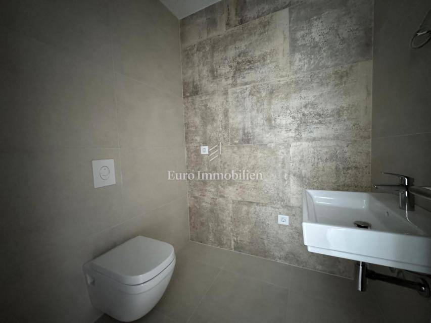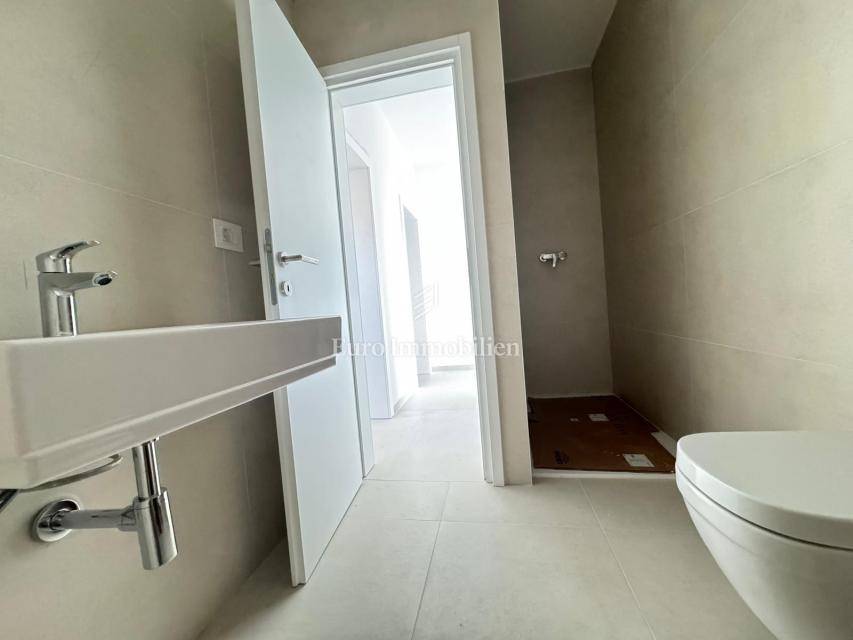 The apartment, measuring 94.18 m², is located on the second floor of the building and consists of three bedrooms, the main one with a private bathroom and access to a terrace. There is also an additional bathroom and an open living area that includes a kitchen, dining room and living room with access to a covered balcony. Parking spaces and gardens for the apartments on the ground floor are available for an additional fee, according to the appropriate calculation coefficient. New construction – turnkey. Planned completion of construction: May 2025.