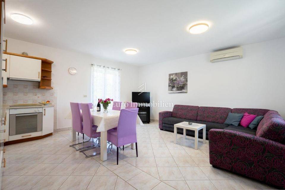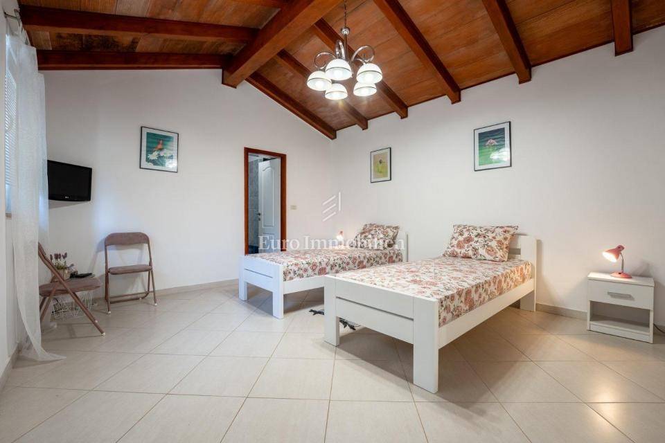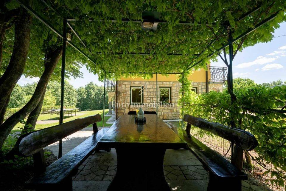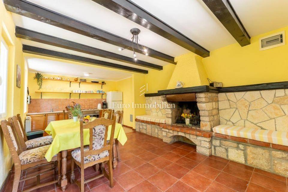 The property consists of two separate houses, each with its own entrance, making it ideal for two families or friends who want to spend time together but maintain their privacy. This property exudes warmth, and the fireplace and rustic decoration elements provide a special atmosphere.