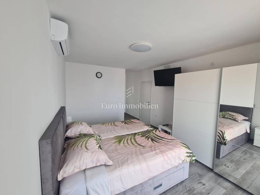 In the basement there is a large two-bedroom apartment with a living room that requires renovation and has access to a large plot. On the ground floor there are two studio apartments, one of which has a terrace, and one one-bedroom apartment with a living room and access to a large terrace. On the first floor there is a spacious apartment consisting of a kitchen with a living room, 4 bedrooms, 2 bathrooms and a large terrace with a sea view. The apartment can be divided into 2 residential units.