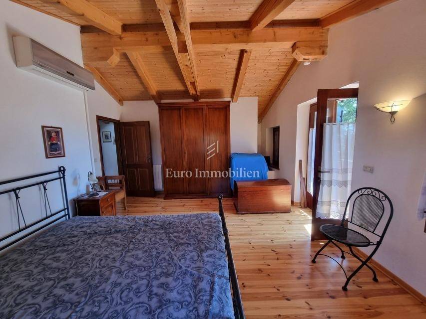 A 140 m2 stone house is located in the middle of a large estate surrounded by olive groves and green areas of 17720 m2.