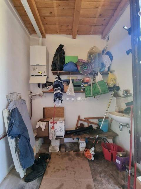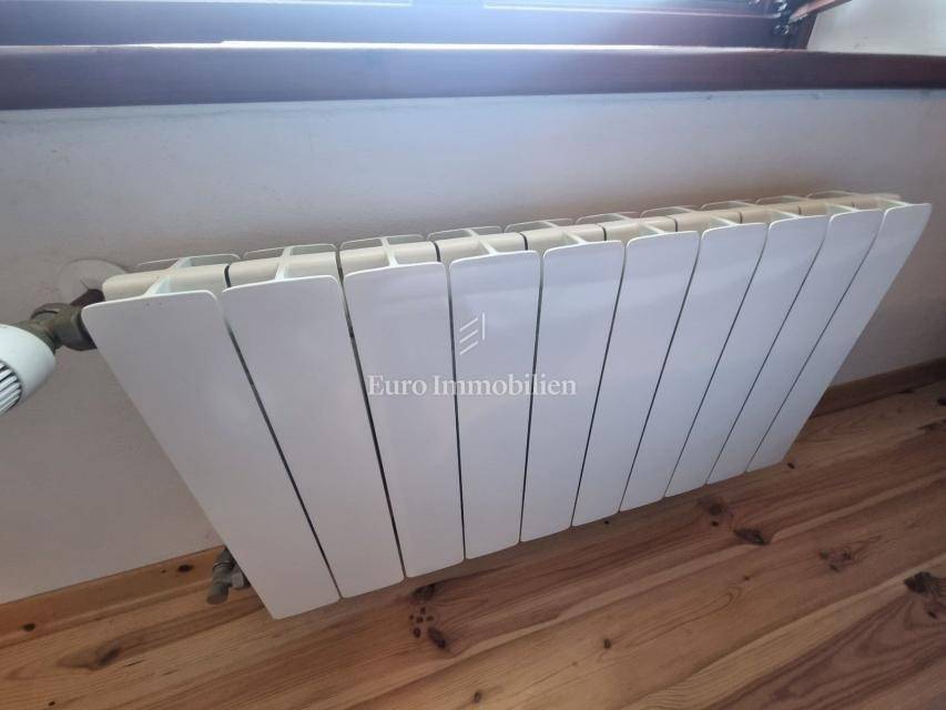 The house is connected to the city water supply, septic tank and has electricity. The heating is central gas.