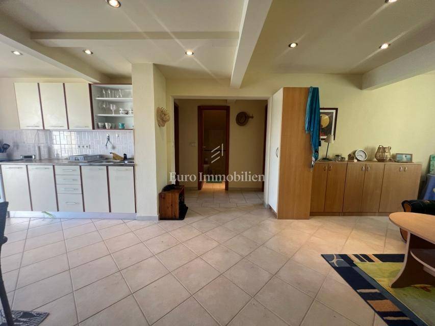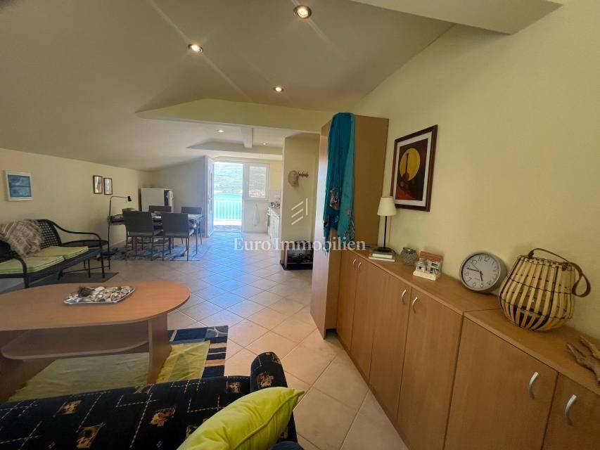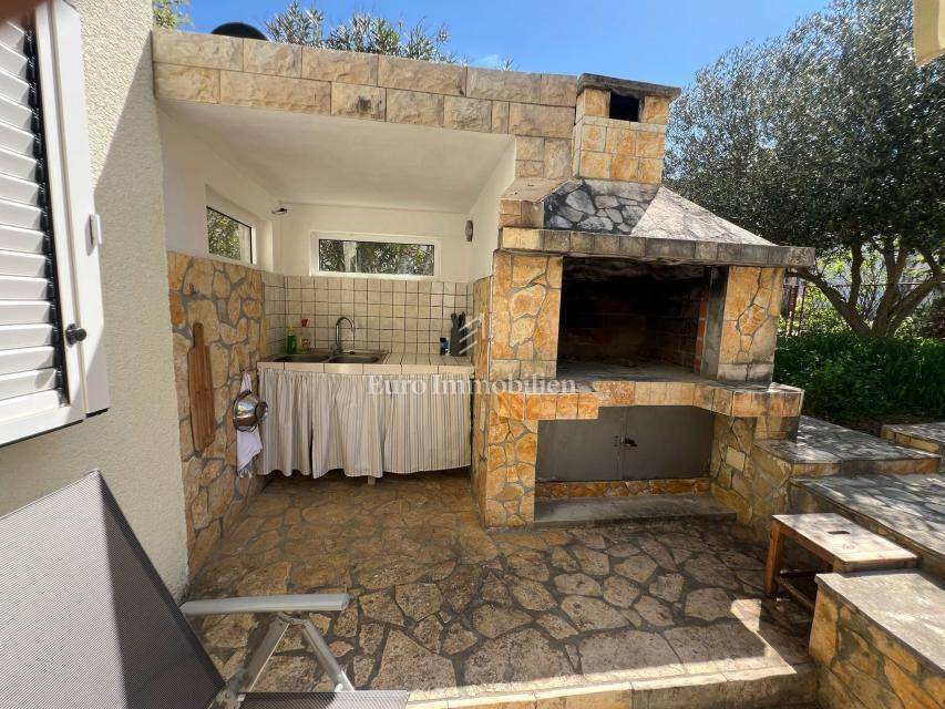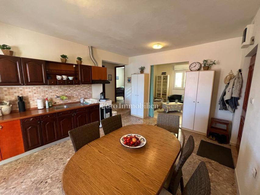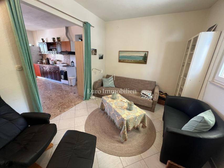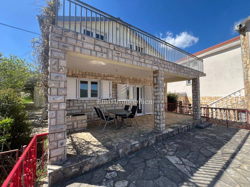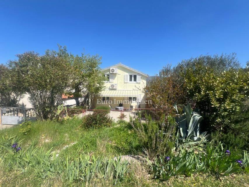 House for sale with open sea view in Donji Karin. The property consists of a partial basement, ground floor and 1st floor, and is located in a quiet street that is not on the main road.