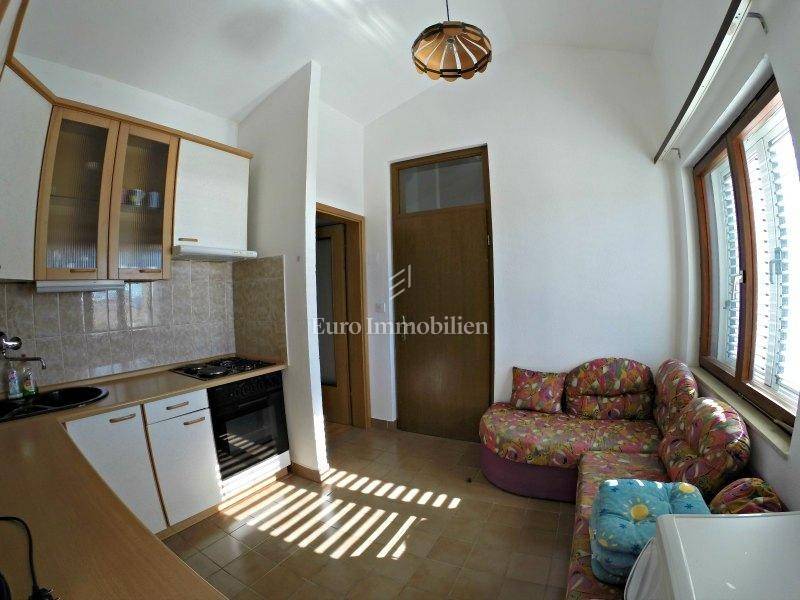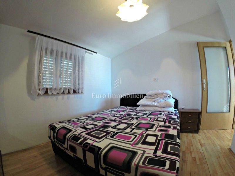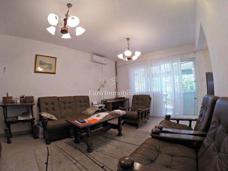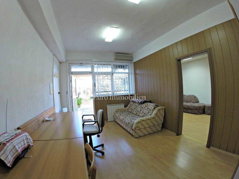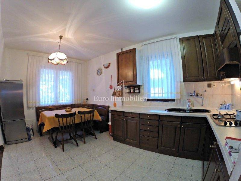 On the ground floor there is one one-bedroom apartment/business space (two rooms, kitchen, bathroom and terrace), a large one-bedroom apartment for the owner (kitchen and dining room, living room, bedroom, bathroom and spacious terrace) and a summer kitchen with a built-in fireplace.