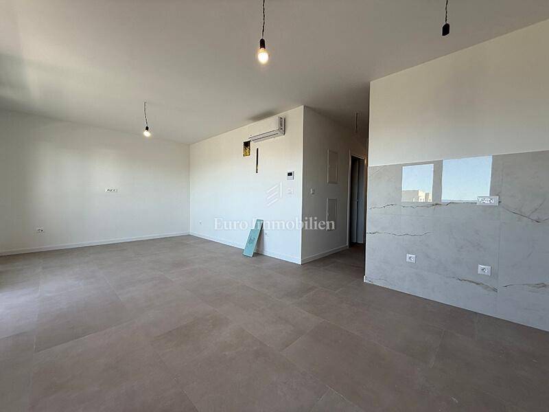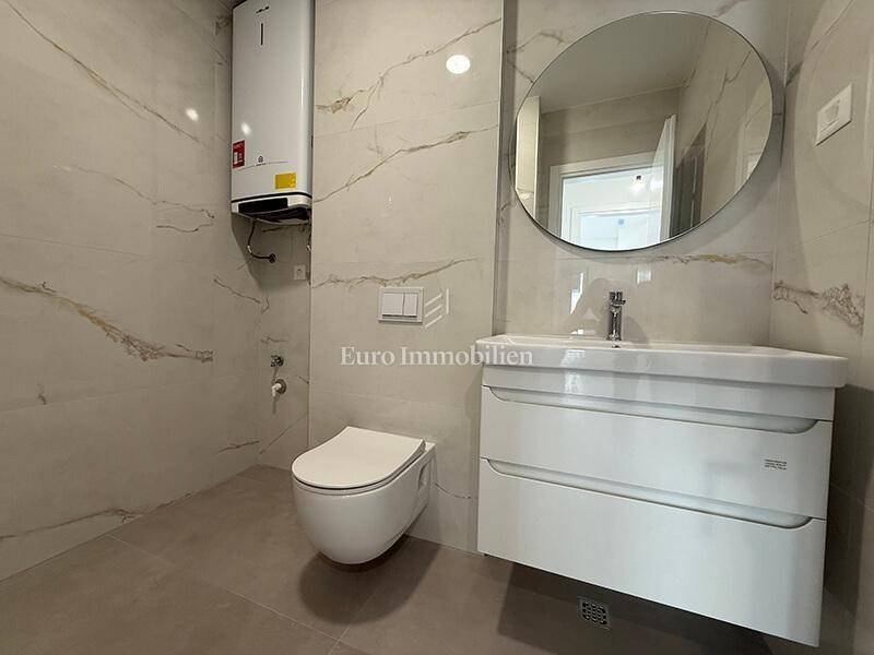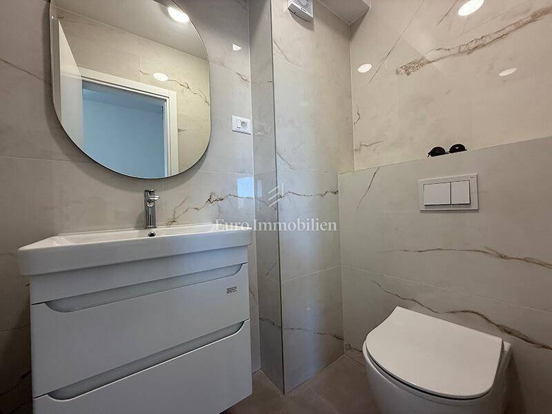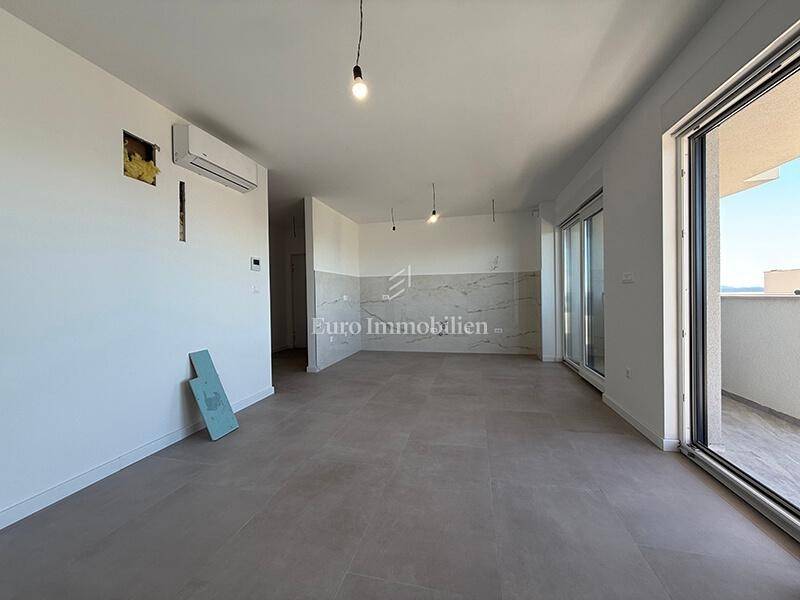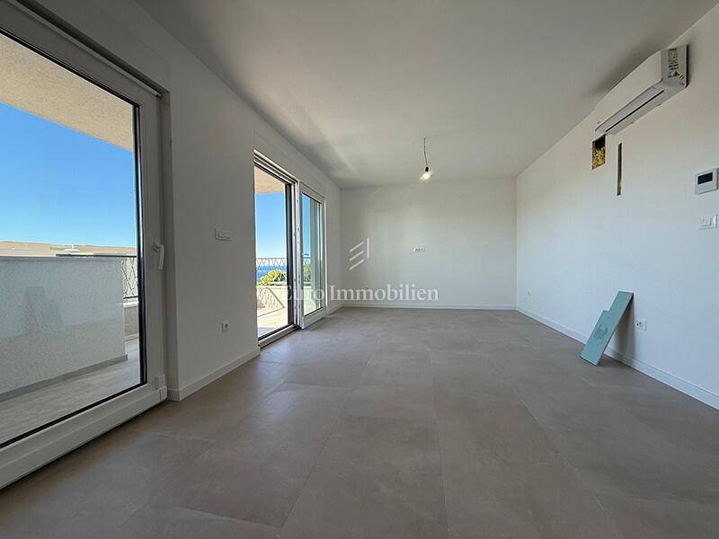 A two-bedroom apartment in a new building with a sea view is located in the western part of Makarska. Apartment is located in a modern building with an elevator. The building has a total of 34 apartments, two garage floors, a ground floor + four upper floors. The apartment is located on the second floor and has a total area of ​​67.67 m².