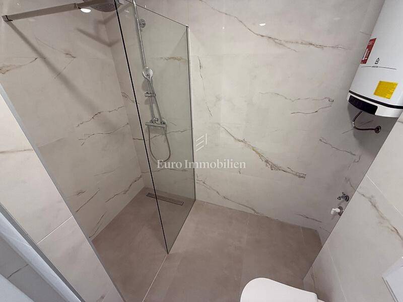 The apartment consists of a kitchen with a dining room and a living room, two bedrooms, a bathroom, a separate toilet and a south-facing balcony of 14 m² with an open view of the sea and islands that cannot be blocked.