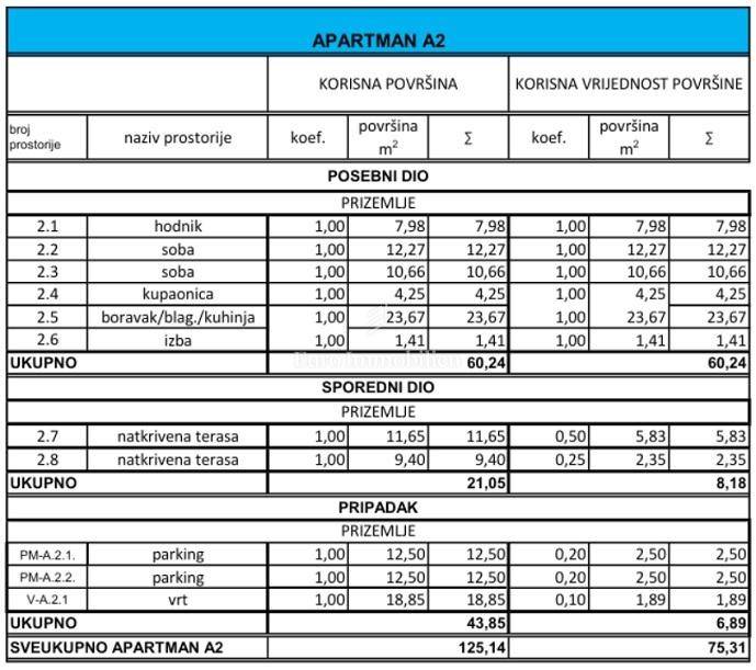 An apartment of 75.31 m2 is for sale on the ground floor of an attractive new building in Novalja. It consists of an entrance hall, 2 bedrooms, a living room with a kitchen and a dining area, a bathroom, 2 covered terraces and a garden of 18.85 m2. It also has 2 parking spaces. The apartment will be air-conditioned and equipped with the highest quality materials. Expected completion of works in early 2026.