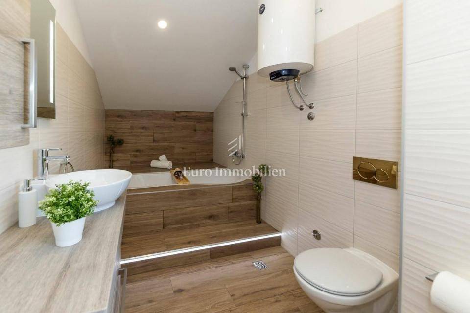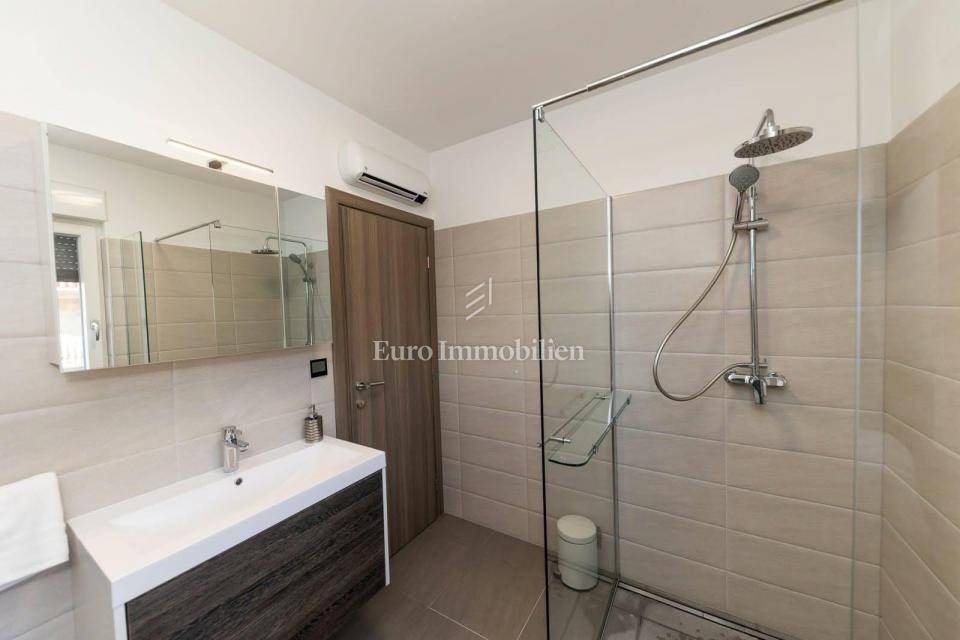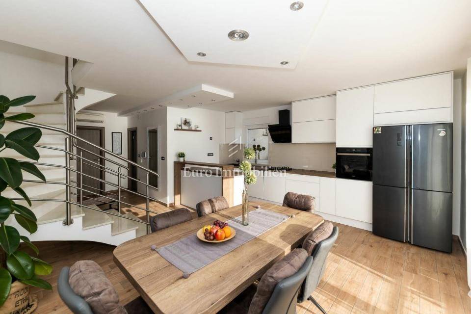 A modern and spacious two-storey apartment for sale, located in a peaceful area of Jadranovo, ideal for buyers seeking comfort, functionality, and an open sea view. The apartment is situated on the second floor of a quality residential building and features two large terraces with panoramic views of the Kvarner Bay. In front of the building there is a green zone, an area without construction, providing additional privacy and tranquillity.