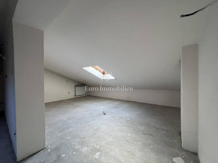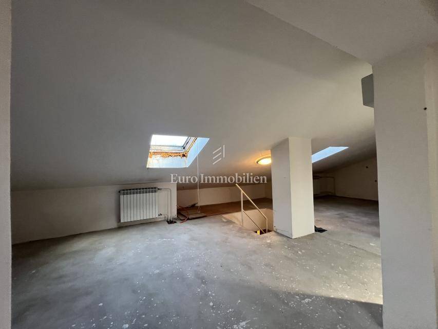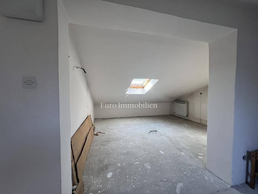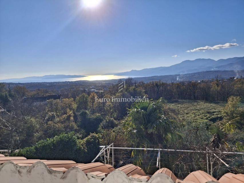 A detached house for sale in Viškovo, located in a quiet area with an open panoramic view of the surroundings and the sea. The property is situated on a plot of 1,249 m² and consists of three floors connected by an internal staircase, with an existing shaft allowing for the future installation of an elevator.