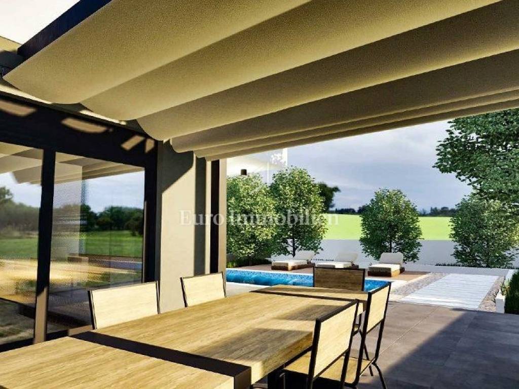 On the ground floor there are: entrance hall, kitchen, living room, dining room, first bathroom, storage room and uncovered terrace. There is also a swimming pool on the ground floor.