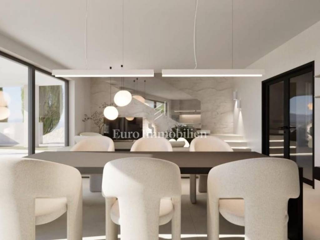 Crikvenica, Jadranovo. In a beautiful location, with a panoramic view of the sea and only a green belt bordering the sea and the house, a semi-detached family house is for sale.