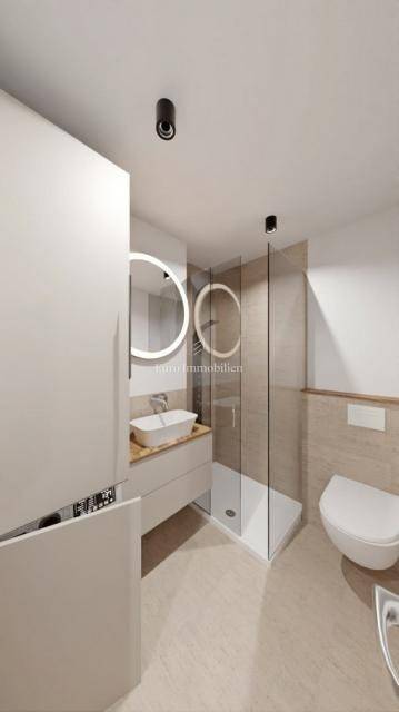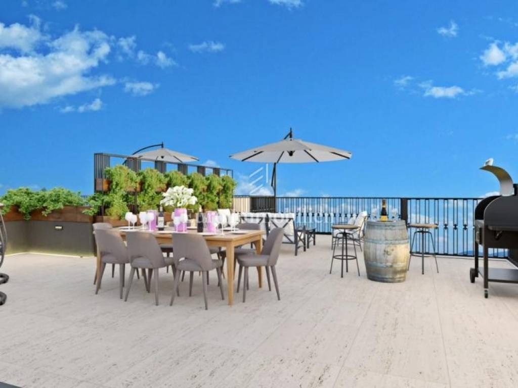 Second floor: S4 – Apartment 2nd floor The apartment on the second floor has 78 m2 of living space. It consists of an entrance hall, a hall, two bedrooms (one with access to a small balcony), a bathroom, a toilet and a spacious living room, kitchen and dining room. The living room opens onto a covered balcony with a sea view, and this apartment additionally offers a spacious roof terrace. Price: €355,000