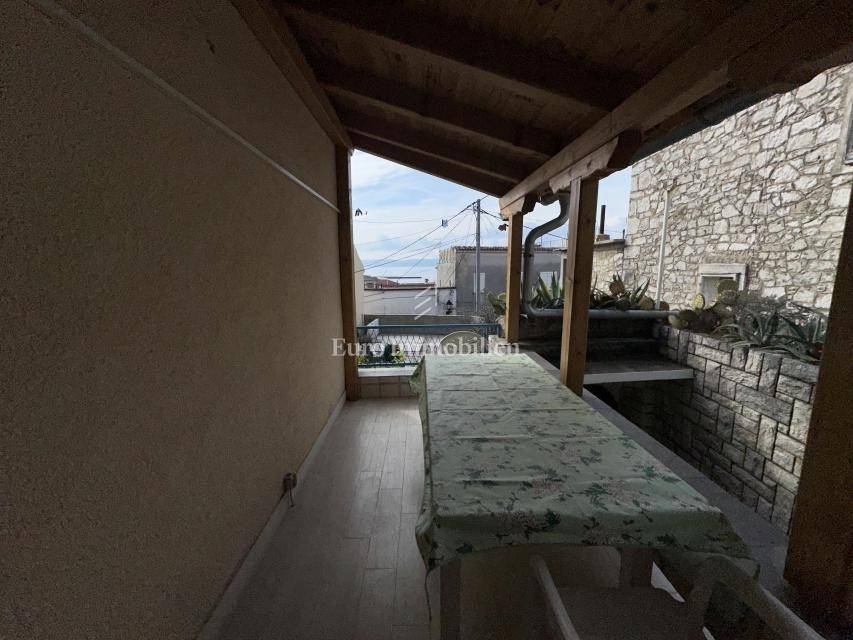 The ground floor has a tavern, summer kitchen and bathroom. External stairs lead to the first floor, where there is a living room, separate kitchen, bathroom and a beautiful covered terrace. Internal stairs lead to the second floor, where there are two bedrooms, both with comfortable balconies offering a beautiful view of the sea.