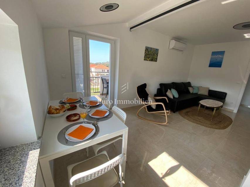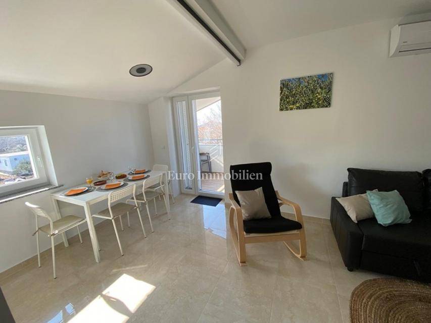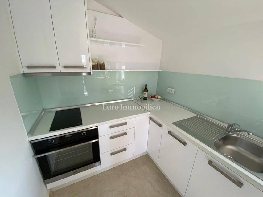In Betina, in a quiet location near the sea, an apartment with a garden and a sea view is for sale.